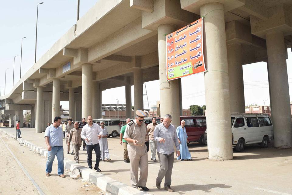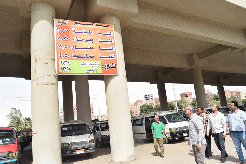صور..محافظ المنيا يتابع تطبيق تعريفة الأجرة الجديدة بموقف سيارات الاخصاص