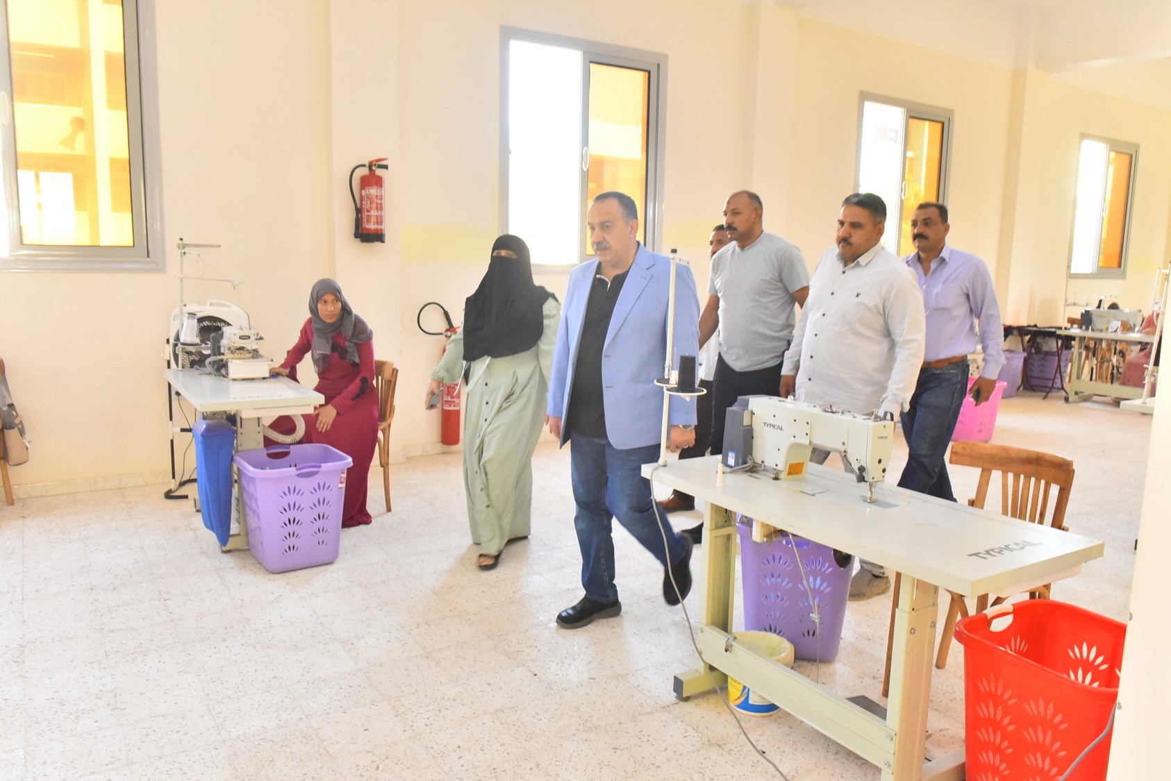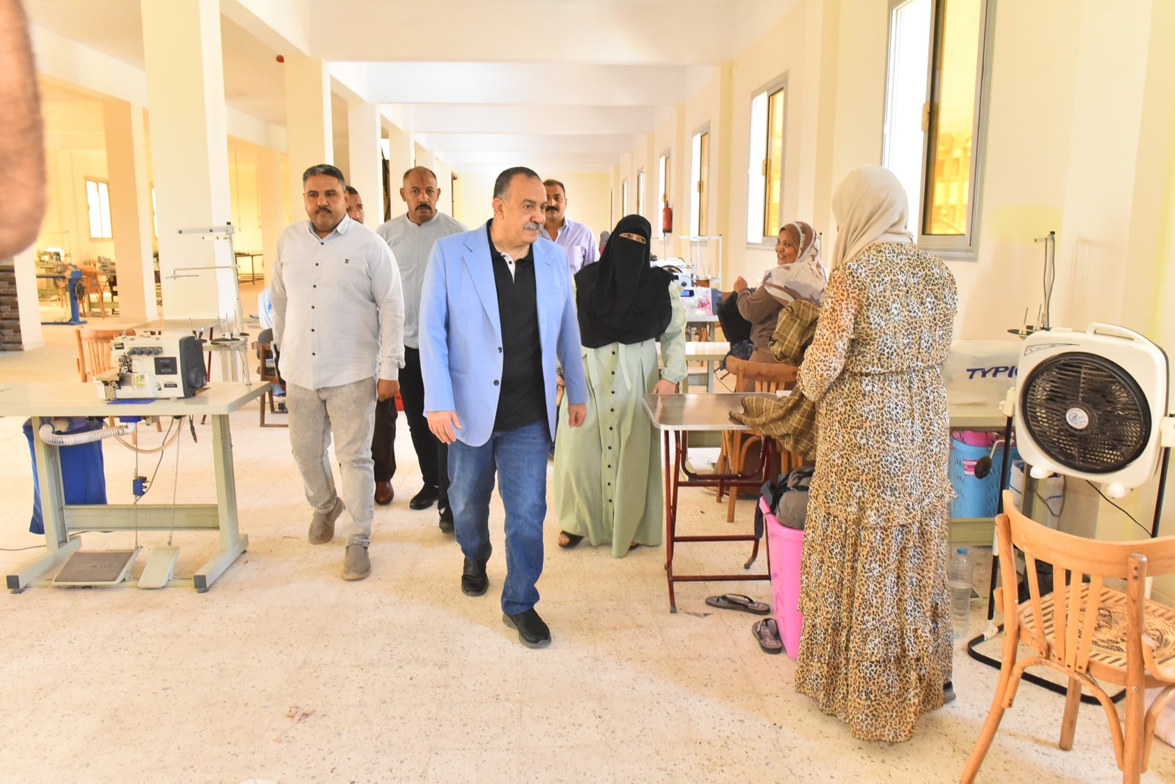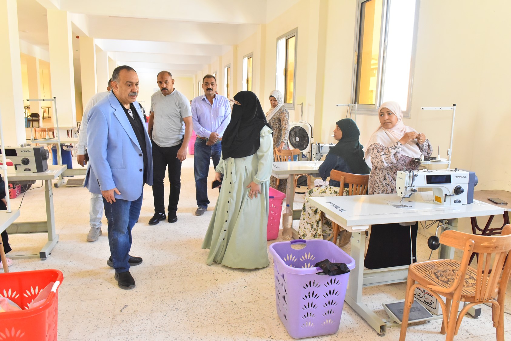 محافظ أسيوط يتابع إنتاج مشغل الخياطة بالمجمع الحرفي بالشامية