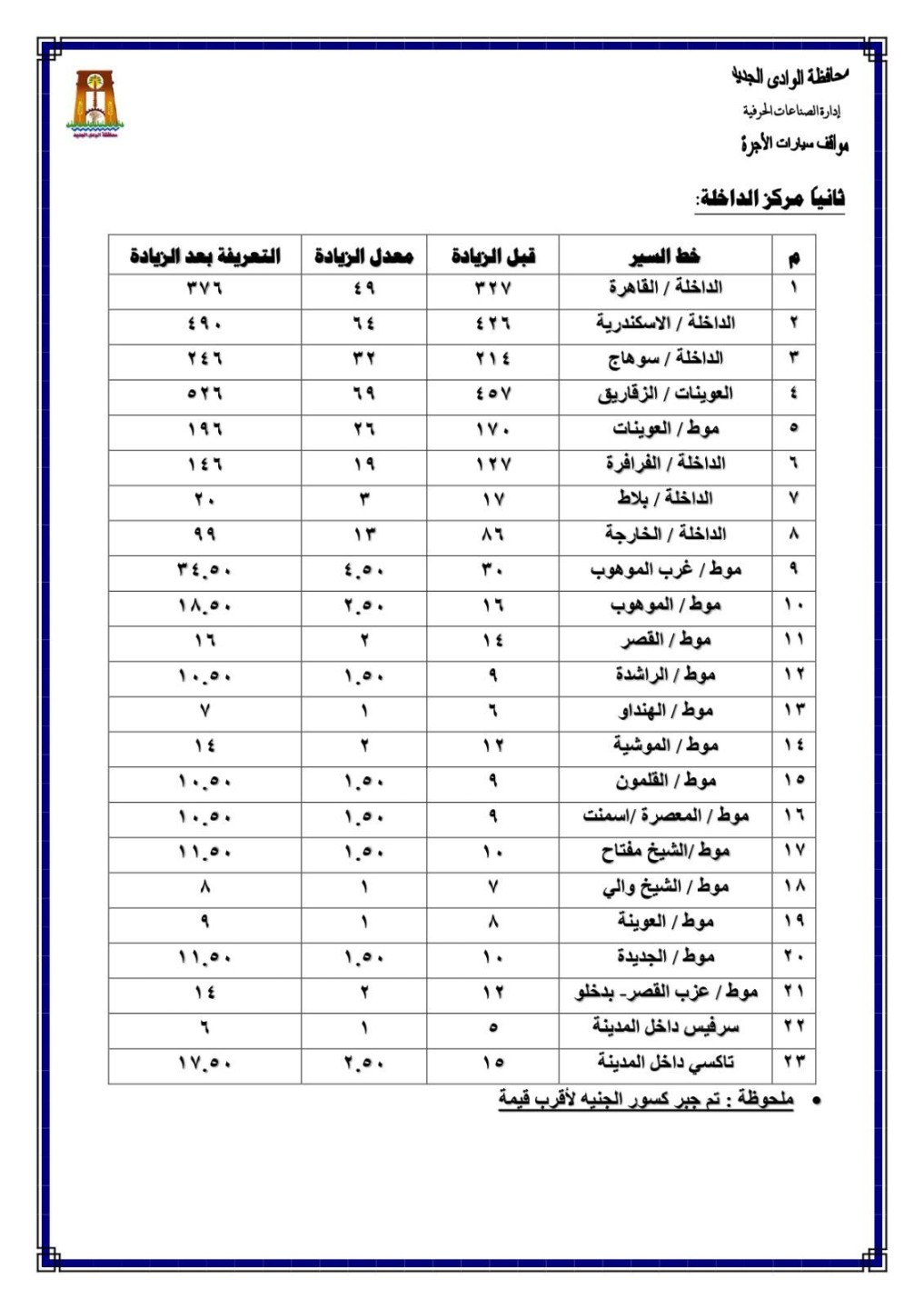 ننشر تعريفة الأجرة الجديدة لخطوط السير الداخلية والخارجية بـ الوادي الجديد