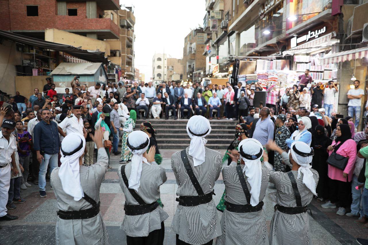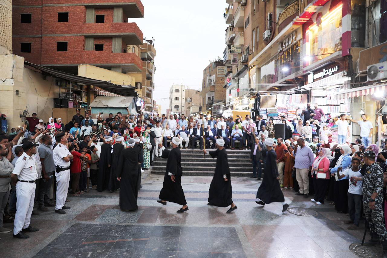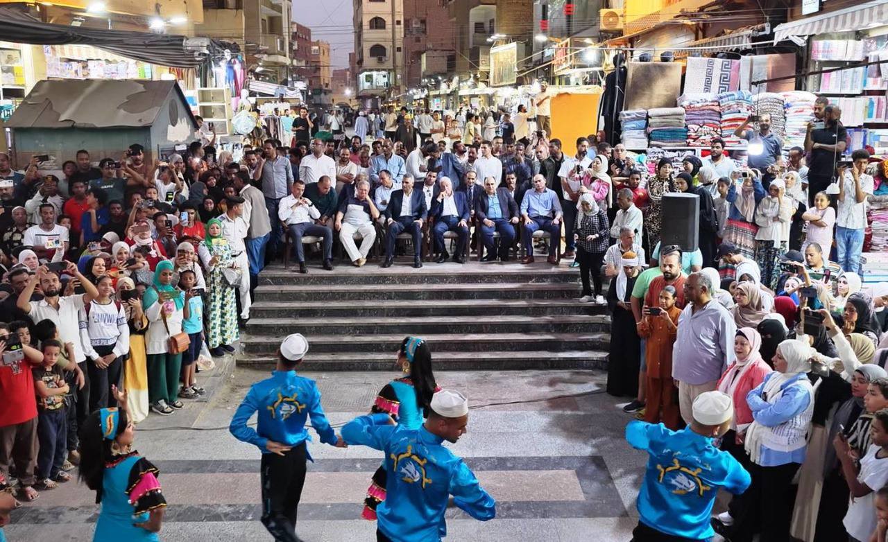 رافقهما المهندس عمرو لاشين، نائب المحافظ ، واللواء خالد اللبان ، رئيس الهيئة العامة لقصور الثقافة ، والمهندس حمدى سطوحى، مدير عام صندوق التنمية الثقافية ، وسط لحظات مبهجة إمتلأت بالأغانى التراثية والرقصات الشعبية / التى جسدت روح مصر عبر العصور قدمتها 8 فرق للفنون الشعبية ، وهى أسوان والأقصر وملوى وسوهاج وكفر الشيخ وبورسعيد والعريش والأنفوشى
