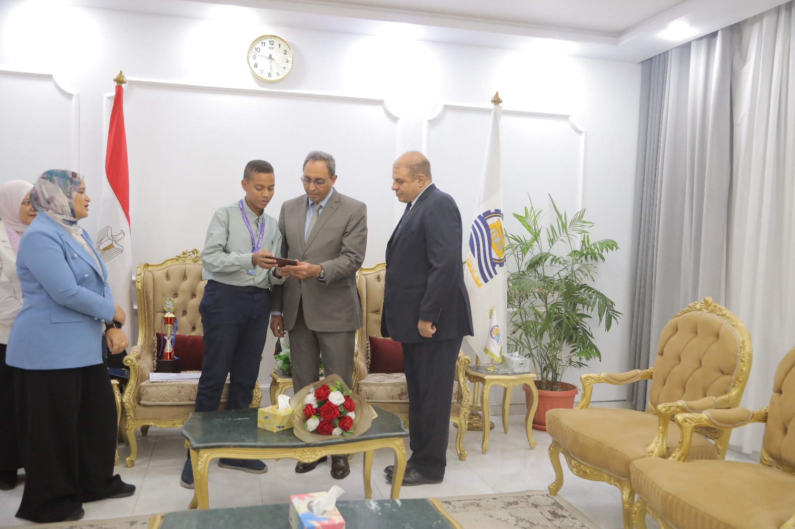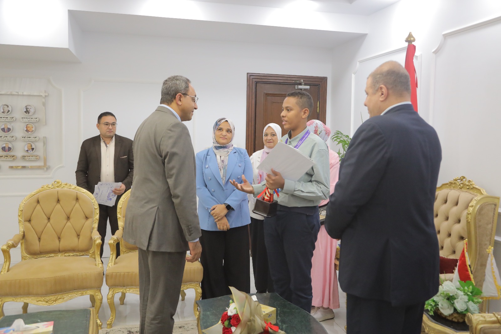 كرّم الدكتور خالد عبدالحليم، محافظ قنا، بمكتبه الطالب مروان تامر محمد، بالصف الثالث الإعدادي بمدرسة الشهيد العميد محمد جمال نصاري الإعدادية بنين "الحديثة سابقا" بقنا، الحاصل على المركز الثالث عالميًا في تصميم المواقع الإلكترونية، ضمن فعاليات المنتدى الأفرو آسيوي للابتكار والتكنولوجيا (AAFFIAT)، الذي أُقيم بدولة ماليزيا، وذلك بحضور هاني عنتر الصابر وكيل وزارة التربية والتعليم بقنا، وأفراد أسرة الطالب.