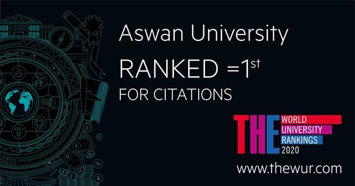 جصلت جامعة أسوان، على المركز الأول على مستوى العالم فى "الاستشهادات البحثية" وفقاً للتصنيف البريطانى التايمز للتعليم العالى The Times Higher Education.