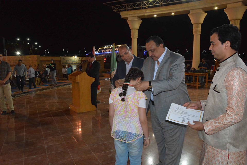 شهد محمد عبدالفتاح، سكرتير عام محافظة المنيا، نائبا عن اللواء قاسم حسين، محافظ المنيا، حفل توزيع جوائز المسابقة الفنية السنوية " لمحات من الهند" للطلاب من أبناء المحافظة من الفئات العمرية 6 – 12 سنة (المرحلة الابتدائية ) ومن 13-15 سنة ( المرحلة الاعدادية) ومن 16-18 سنة ( المرحلة الثانوية )، في إطار التعاون بين وزارة التربية والتعليم ومركز مولانا آزاد الثقافي الهندى التابع للسفارة الهندية بالقاهرة.