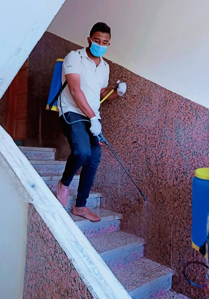 يواصل شباب مبادرة " حق بلدنا علينا " بدشنا، في قنا، تطهير وتعقيم المؤسسات الحكومية والعامة والشوارع الرئيسية لمواجهة انتشار فيروس كورونا .