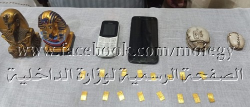 عقب تقنين الإجراءات ، تم استهدافهما بمأمورية برئاسة قطاع الأمن العام،  وبمشاركة إدارة البحث الجنائى بمديرية أمن الفيوم، أسفرت عن ضبطهما بدائرة قسم شرطة أول الفيوم، حال ترويجهما لـ (20) قطعة "يشتبه فى أثريتها"، عبارة عن (16) قطعة لعملة ذهبية عليها نقوش مضغوطة من الجانبين ، و(2) جعران عليها كتابات هيروغليفية الأول بأبعاد (7 سم × 5 سم) والثانى بأبعاد (5 سم × 3 سم) ،و(2) تمثال لرأس آدمى ذات قاعدتين مذهبتين كلاهما بارتفاع 10 سم وبأبعاد (11 سم × 6 سم) .