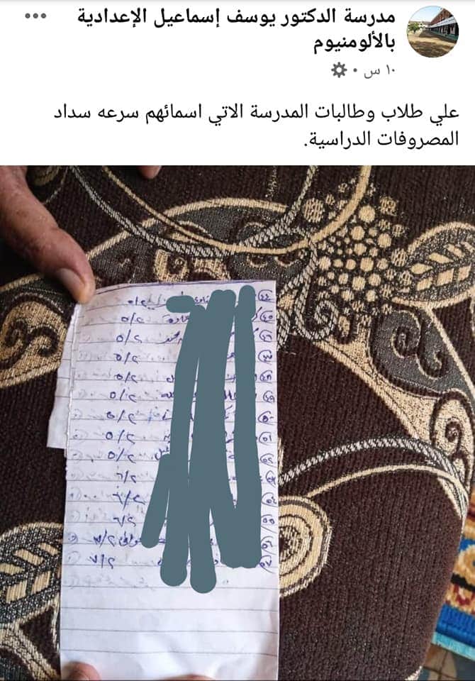 حدث في نجع حمادي.. مدرسة تنشر أسماء الطلاب المتخلفين عن سداد المصروفات علي الفيس بوك.. والإدارة التعليمية تحيل مديرها للتحقيق