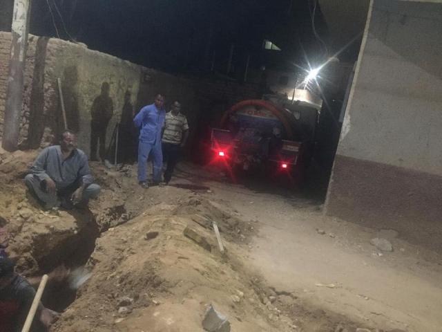 وقام  محمد صحصاح ، رئيس مركز البياضية، يرافقه محمد حسن سكرتير قرية البغدادي، وعبد الشافى مدير ادارة مياه البياضية ، بدفع فرقة لاصلاح العطل، حيث تبين وجود كسر فى ماسورة مياه ٤ بوصة تمر بالطريق.
