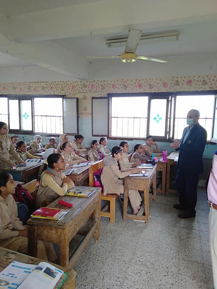 تفقد وكيل الوزارة الفصول الدراسية وناقش التلاميذ علمياً على السبورة للوقوف على المستوى العلمي لتلاميذ المدرسة ، حضر وكيل الوزارة حصة تربية دينية بالصف الرابع الابتدائي ، وحضر حصة رياضيات بالصف الرابع الابتدائي ، كما حضر حصة دراسات إجتماعية بالصف الخامس الابتدائي، كما تفقد معمل الحسب الآلي ومعمل العلوم بالمدرسة.
