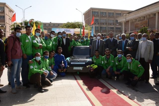 صور.. رئيس جامعة أسيوط يشهد العرض التجريبي لأول سيارة كهربائية لفريق assiut Motorsport