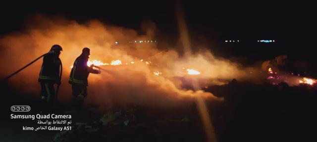 السيطرة على حريق خلف منطقة المدينة الصناعية والظهير الصحراوى الغربى برأس غارب