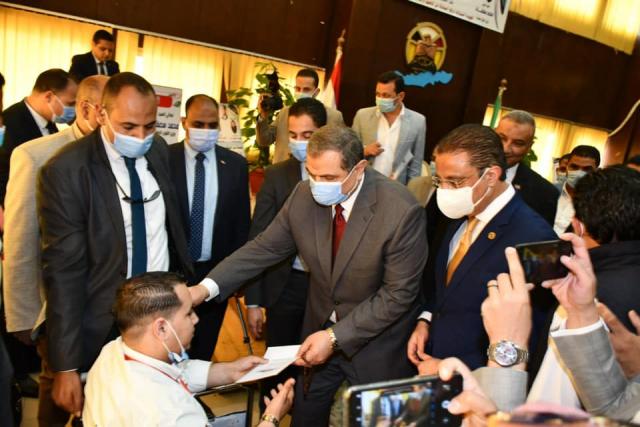 وزير القوى العاملة ومحافظ الفيوم يسلمان شهادات أمان للعمالة غير المنتظمة.. ويوزعان 70 فرصة عمل لذوي الهمم