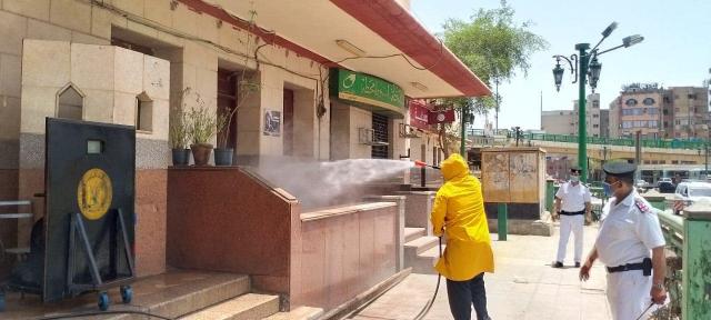 حيث شهد حي غرب مدينة أسيوط ، عدة حملات للتعقيم والتطهير تحت إشراف محمد بشير رئيس الحي شملت رش وتطهير المساجد ومحيطها استعدادًا لعيد الفطر المبارك بمناطق المجاهدين وشارع بورسعيد والمجذوب فضلا عن رش وتطهير محطة السكة الحديد والميدان والشوارع المحيطة كإجراء وقائي لمواجهة فيروس كورونا وحماية المواطنين من احتمالية الإصابة بعدوى الفيروس كما نفذت الوحدة المحلية لمركز ومدينة البداري تحت إشراف محمد حسن رئيس المركز حملة رش وتطهير لدور العبادة والمساجد ومكاتب البريد ومقر الوحدة المحلية بقرية نجوع المعادي باستخدام سيارة الرش الخاصة بالمركز تنفيذًا لتوجيهات محافظ أسيوط بتكثيف حملات رش وتطهير المصالح الحكومية والمراكز الخدمية التي يتردد عليها عدد كبير من المواطنين للحد من انتشار فيروس كورونا.