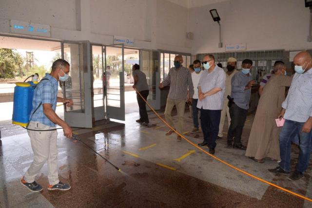 تفقد محافظ أسيوط،  أعمال تعقيم ورش وتطهير محطة السكة الحديد بصدفا والتي شملت واجهة مبنى المحطة من الخارج وبوابات الدخول والخروج وشبابيك التذاكر والمكاتب الإدارية ومقاعد وأماكن الانتظار ودورات المياه مشددًا على ناظر المحطة بضرورة تكثيف أعمال التطهير والتعقيم يوميا لجميع أنحاء المحطة للحفاظ على سلامة العاملين والمترددين عليها موجها بوضع مطهرات في أماكن ظاهرة والتنبيه على العاملين بإجراءات التطهير والوقاية الدورية.