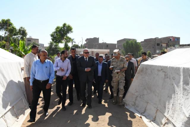 محافظ قنا يتفقد معسكر الإيواء العاجل بالمعنا ويشهد محاكاة عملية للسيطرة على حريق وهمى