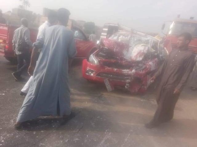 إصابة 15 شخصًا فى تصادم سيارتين على طريق ”قفط - قوص” بقنا