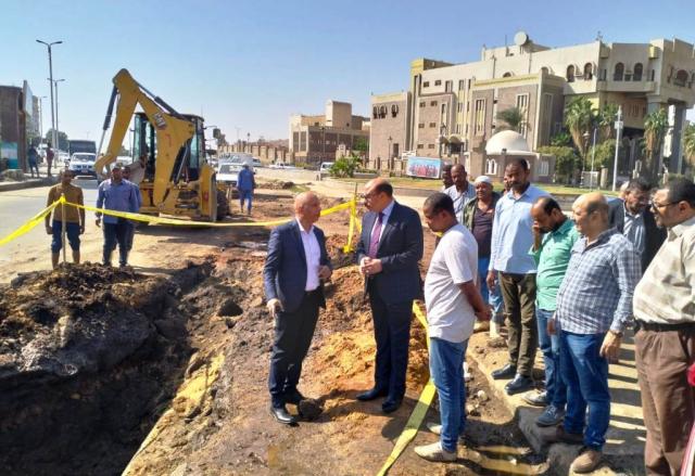 محافظ أسوان يطمئن على ضخ مياه الشرب عقب إصلاح الكسر المفاجئ أمام ملاهى بكار