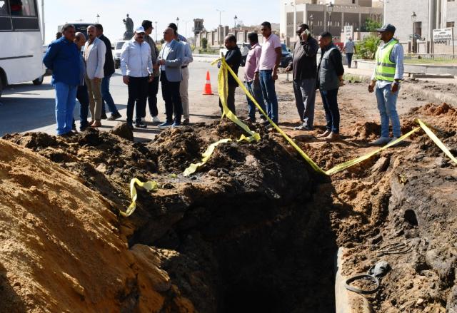 محافظ أسوان يوجه لسرعة نهو مشروع إحلال وتجديد خطوط مياه الشرب والصرف الصحى بكسر الحجر .. وإعادة تدفق مياه الشرب مرة أخرى بعد إصلاح الخط الرئيسى