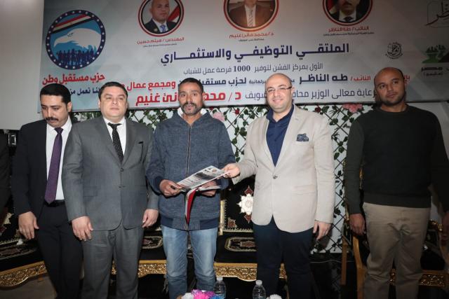 جاء ذلك خلال افتتاحه فعاليات متلقى التوظيف الذي عقد بقاعة الملوك بمركز الفشن، وفي حضور : النائب حسام العمدة ، عضو مجلس النواب ، والأمين العام لحزب مستقبل وطن ببني سويف، والنائب طه أبو الناظر ، عضو مجلس النواب، وأمين مساعد الحزب ببني سويف ، والدكتور عبدالله مبروك، عضو مجلس النواب ، والنائبة ميرفت ميشيل، عضو مجلس النواب،والمهندس هيثم حسن ، رئيس مجمع عمال مصر الخدمي والصناعي والتعليمي، وطه رزق ، نائب رئيس الوحدة المحلية لمركز ومدينة الفشن