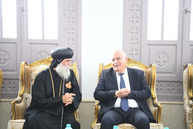 محافظ قنا يهنيء الانبا بيمن أسقف نقادة و قوص لترقيته لرتبة مطران