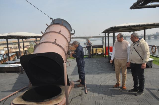 كما تمت معاينة الوضع على الطبيعة لاتخاذ الإجراءات الفنية اللازمة لإعادة تسيير الباخرة، التي تم رسوها بشكل مؤقت أمام نادي المهندسين ، حيث تم عمل قياسات للقاع والغاطس وارتفاعات الكوبري ، لتحديد مسار للباخرة، بعد تفكيك المدخنة العلوية وبعض التندات أعلى سطح الباخرة التي يبلغ ارتفاعها 11متر وعرضها 13 متر ، وتتكون من 3 طوابق وسطح