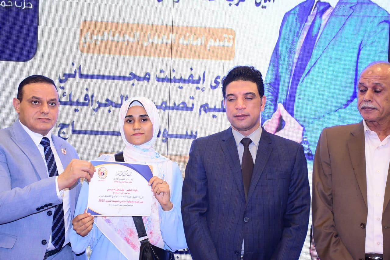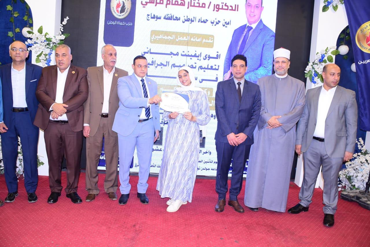 نظم حزب" حماة الوطن" بمحافظة سوهاج، برعاية الدكتور مختار همام مرسي، أمين عام الحزب بسوهاج ،وبحضور الدكتور محمد عبد الهادي، نائب محافظ سوهاج ، حفل تكريم المتفوقين من طلاب الثانوية العامة و الثانوية الأزهريّة بسوهاج .