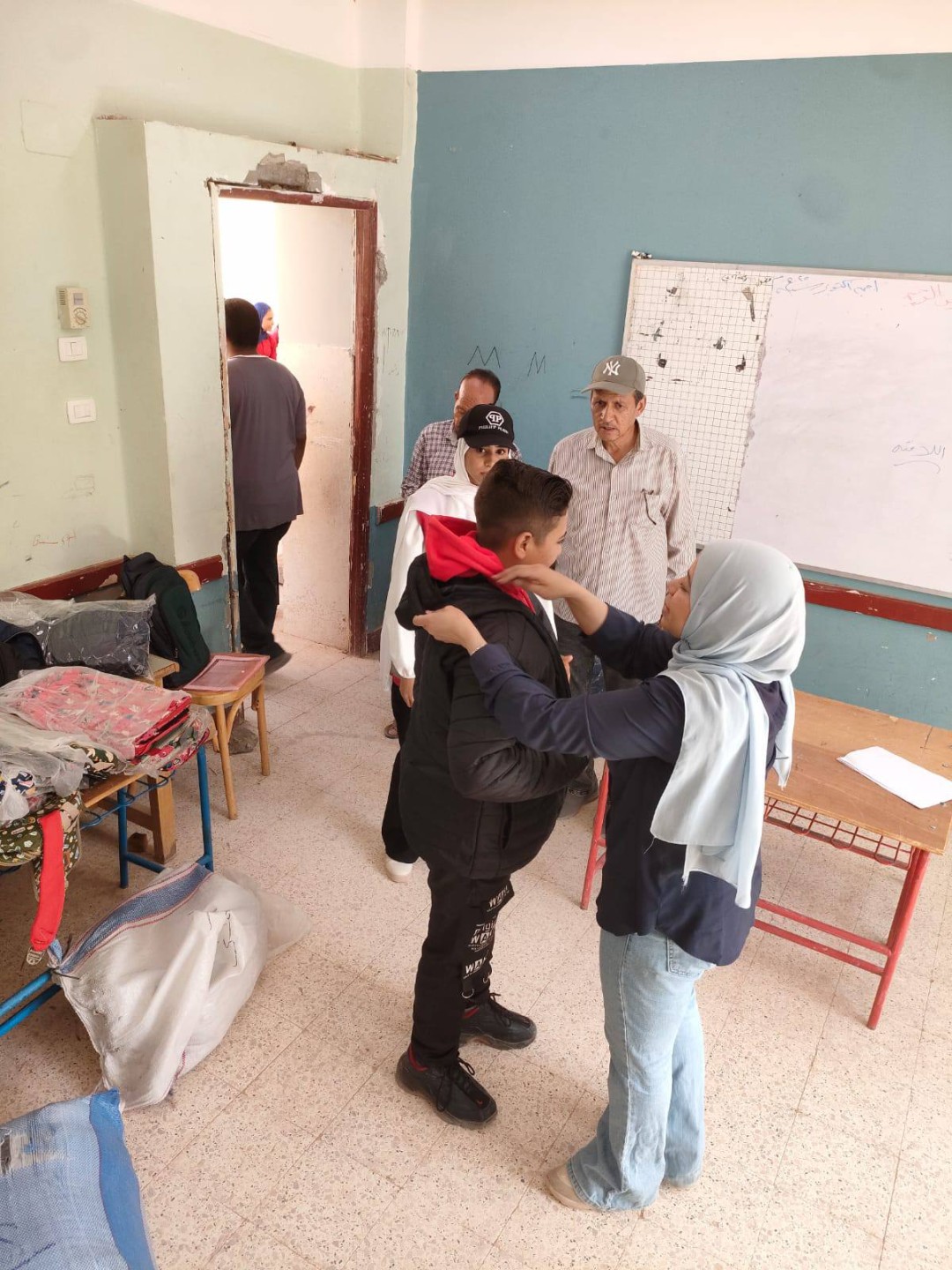 كما تم توزيع عدد ١٥٩ جاكت شتوي لطلاب المرحلة الإعدادية.، وذلك بالتعاون مع بيت الزكاة والصدقات.