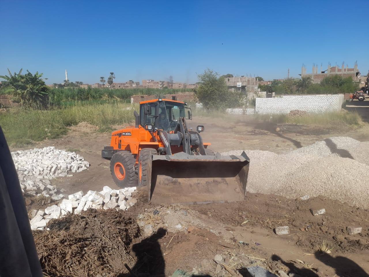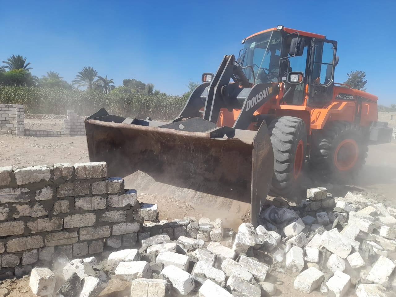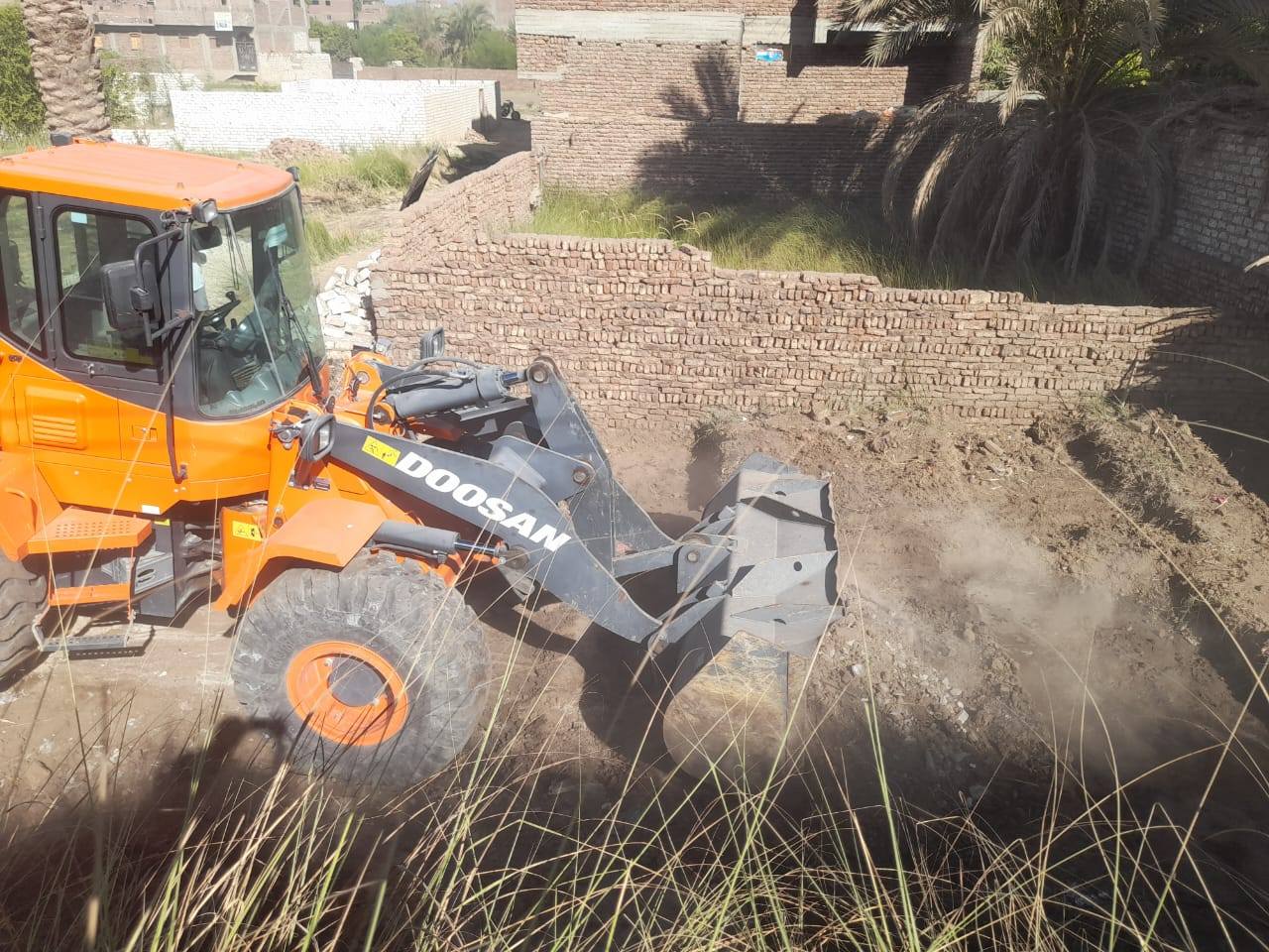 إزالة حالتين تعدي بالبناء على الأراضي الزراعية ومخرات السيول بمدينة الطود في الأقصر