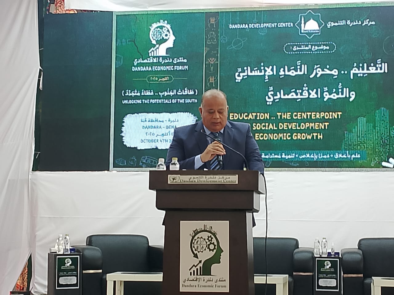 ومن جانبه، نقل اللواء أيمن السعيد، تحيات وتقدير الدكتور خالد عبدالحليم ،محافظ قنا، للحضور والمشاركين، مؤكدًا أن موضوع المنتدى يلامس جوهر رؤية الدولة في بناء الإنسان، مشيرًا إلى أن التعليم يمثل محور النماء الإنساني والنمو الاقتصادي، وأساس تقدم الأمم والحضارات.