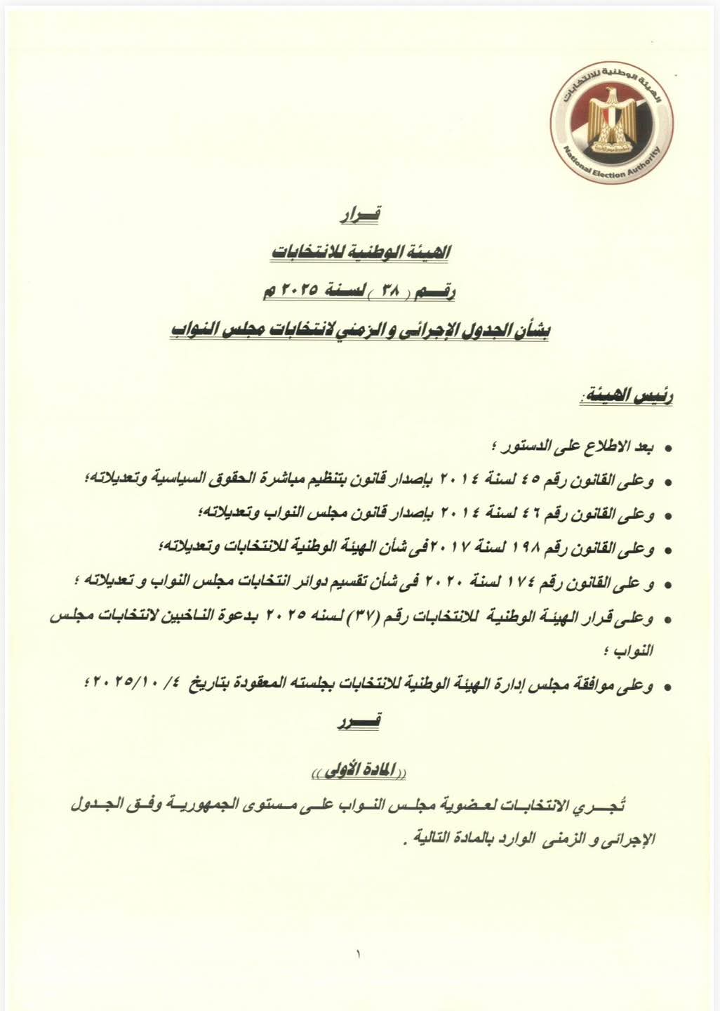 الجدول الزمني لانتخابات مجلس النواب 2025.. من فتح باب الترشح لإعلان النتيجة