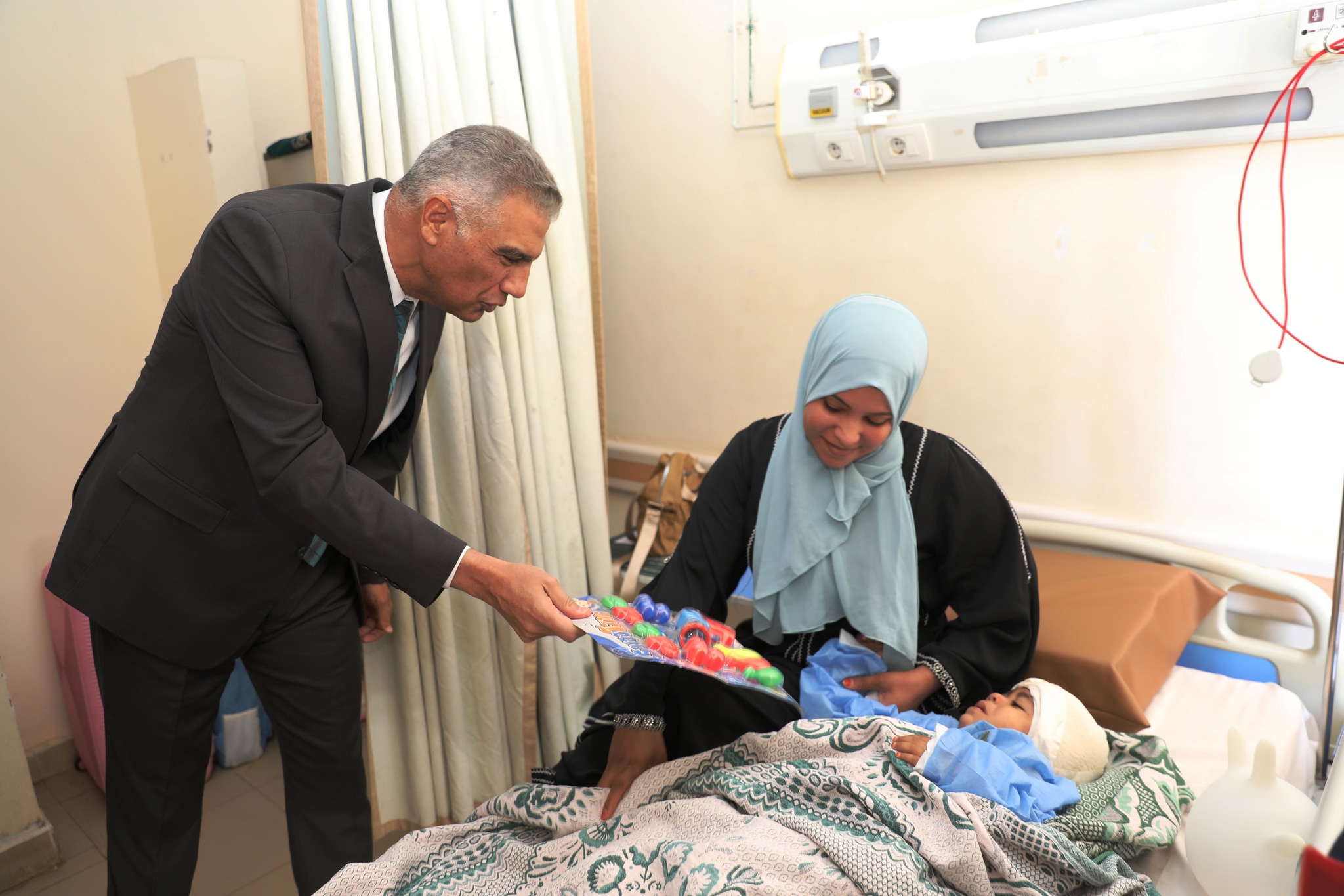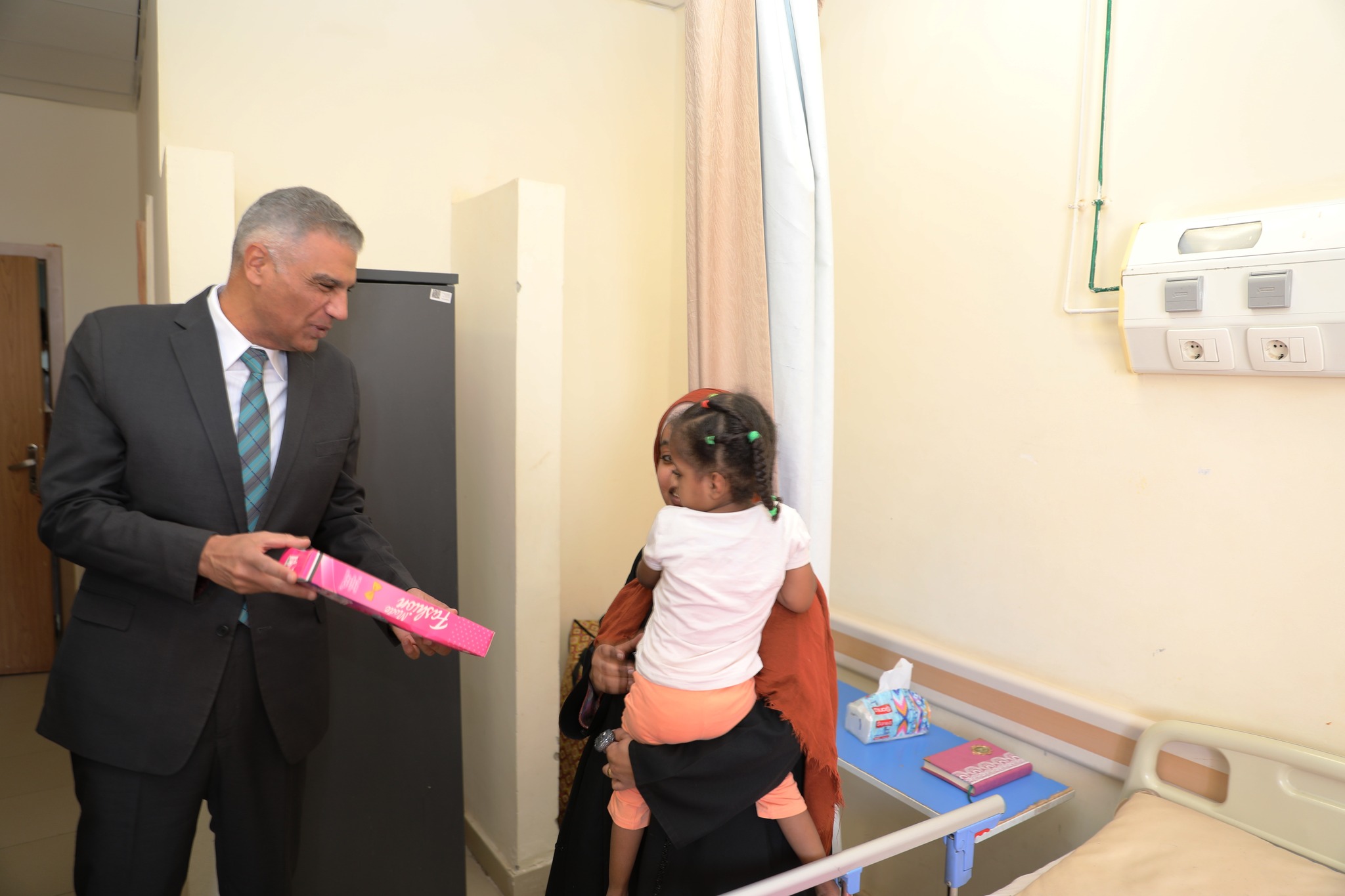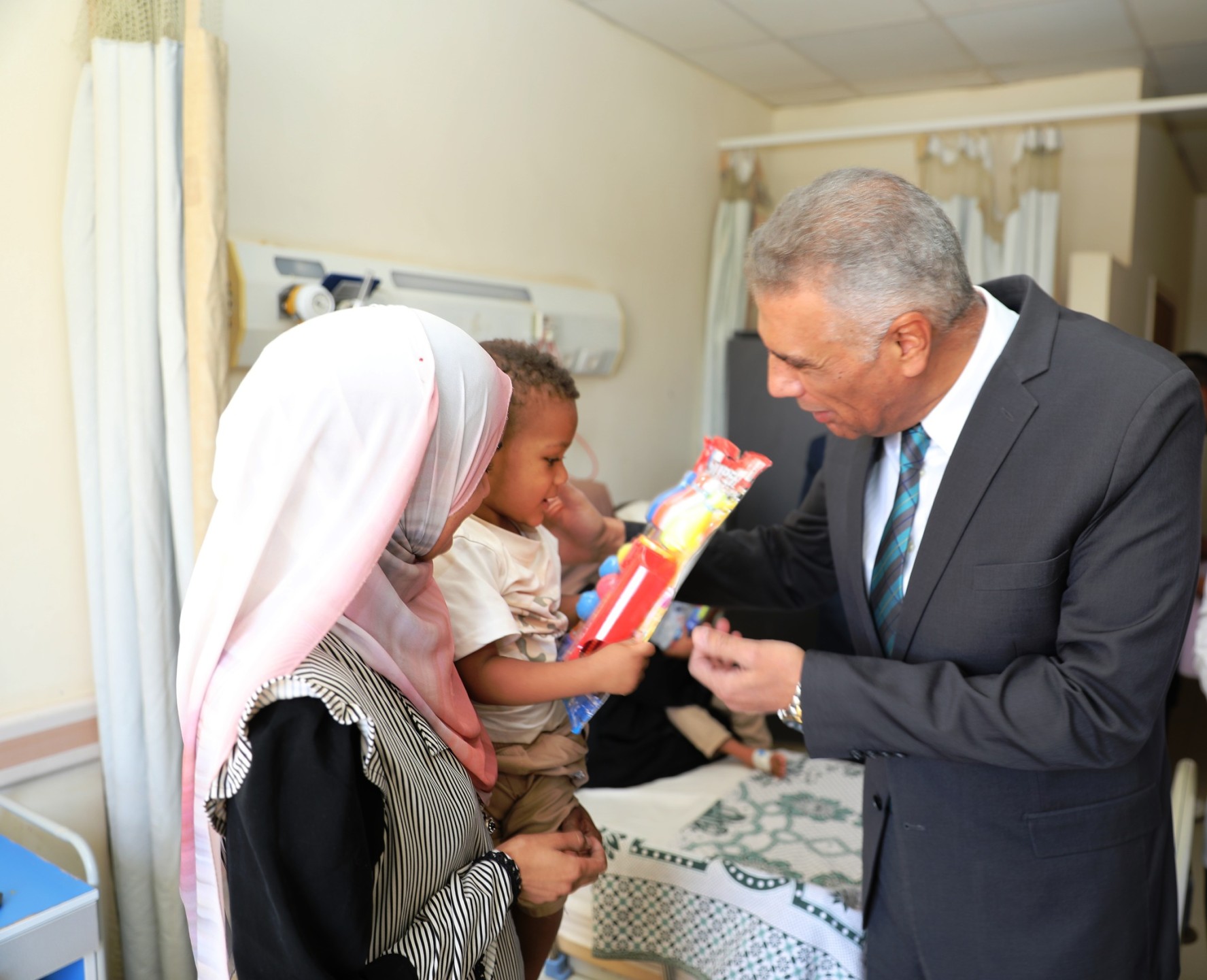 وخلال زيارته برفقة الدكتور محمد نشأت، رئيس إقليم الصعيد بالهيئة العامة للرعاية الصحية ، والدكتور محمد عبد الهادى، مدير فرع الهيئة بأسوان ، والدكتور أبو المجد أبو الوفا، مدير المستشفى ، قام الدكتور إسماعيل كمال، بتوزيع الهدايا من الألعاب على أبنائه الأطفال