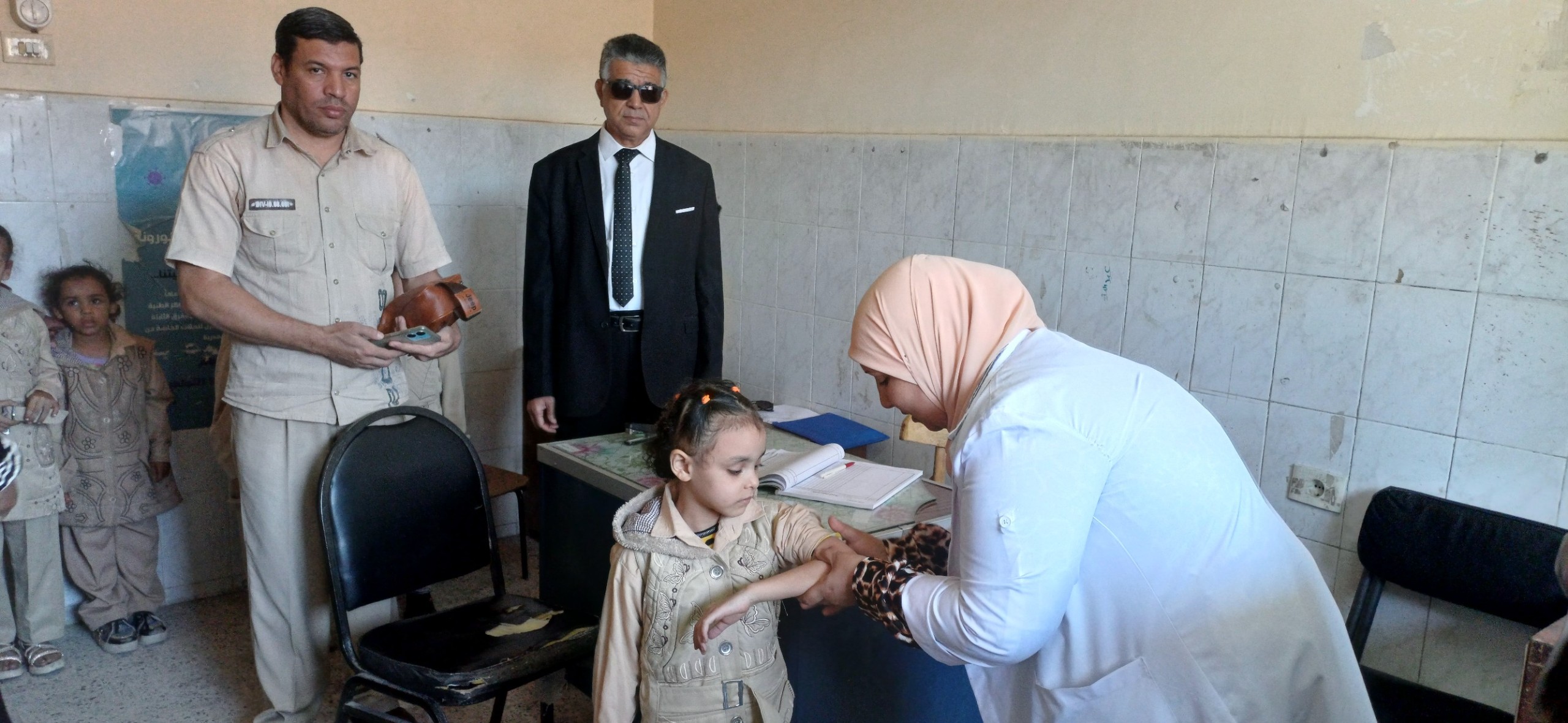 كما تابع وكيل الإدارة خلال جولته ،حملة تطعيم تلاميذ الصف الأول الابتدائي وطلاب الصف الأول الإعدادي ضد الالتهاب السحائي والتيتانوس، مشيدًا بجهود الفرق الطبية في تنفيذ الحملة داخل المدارس بدقة وتنظيم، ومؤكدًا على أهمية متابعة الحالة الصحية للطلاب حفاظًا على سلامتهم.