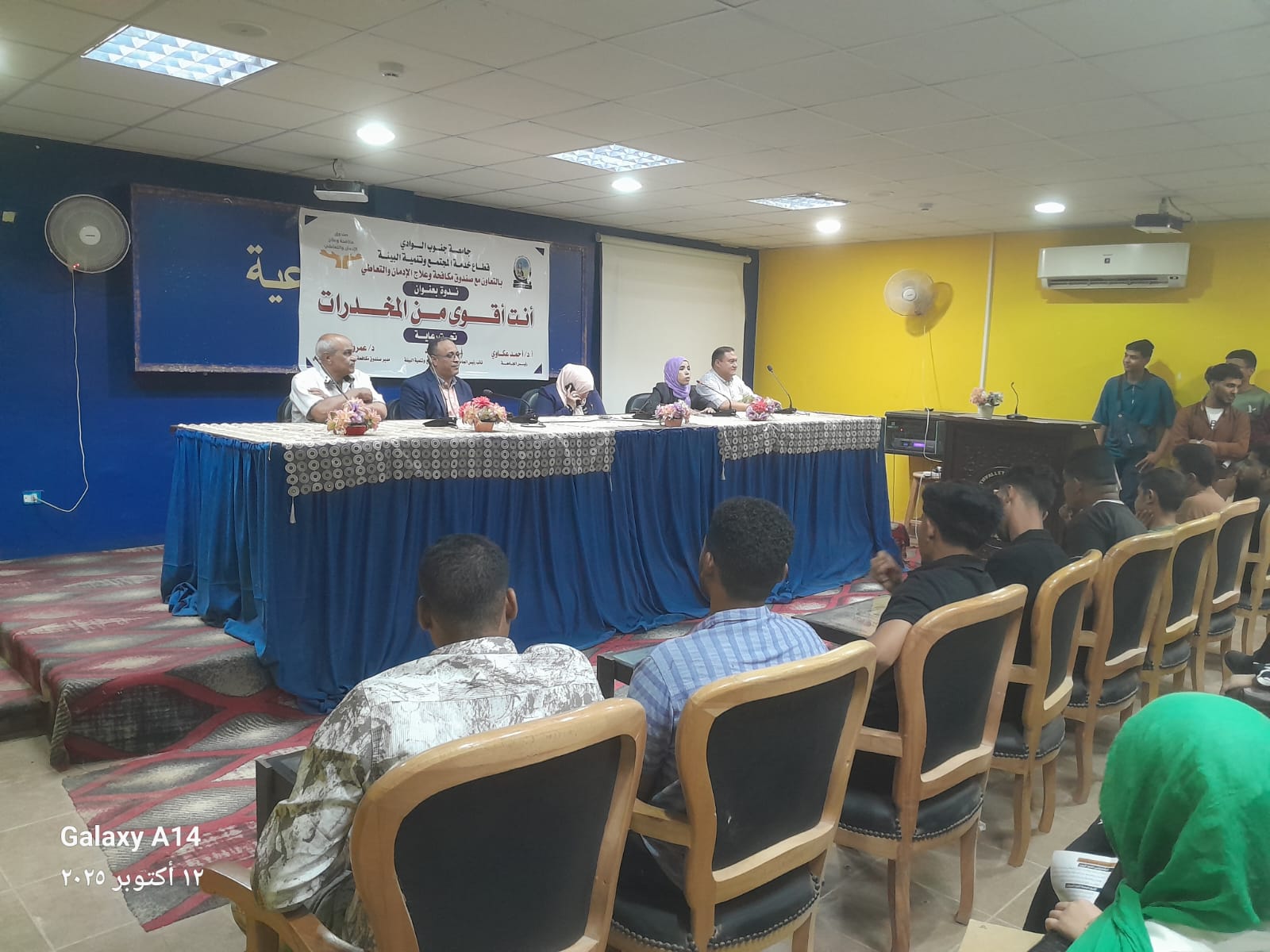 واشاد عميد الكلية، بالدور الرائد الذي تلعبه جامعة جنوب الوادي في دعم مبادرات التوعية والوقاية، بما يعكس التزامها القوي بتنشئة جيل واعٍ ومسؤول. ويأتي تعاون الجامعة المثمر مع صندوق مكافحة الإدمان والتعاطي ليشكل نموذجًا يحتذى به في التنسيق بين القطاع الأكاديمي والمجتمع المدني، من أجل تعزيز بيئة تعليمية صحية وآمنة، تسهم في بناء جيل قادر على مواجهة التحديات الاجتماعية بحكمة ووعي.
