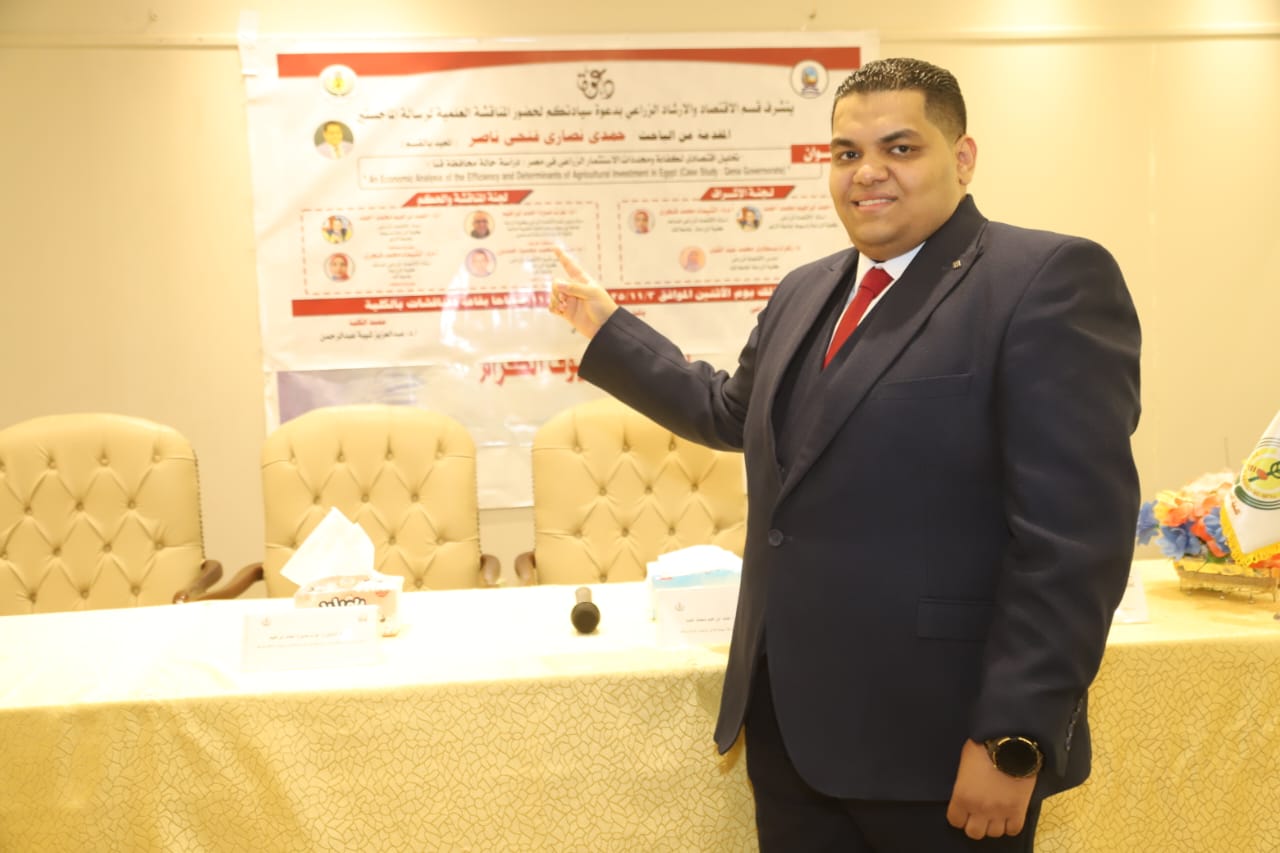 شهدت كلية الزراعة بجامعة قنا مناقشة رسالة الماجستير المقدمة من الباحث حمدي نصارى فتحي ناصر، المعيد بقسم الاقتصاد الزراعي، بعنوان "تحليل اقتصادي لكفاءة ومحددات الاستثمار الزراعي في مصر (دراسة حالة محافظة قنا)"، وذلك في إطار حرص الجامعة على دعم البحوث العلمية التطبيقية التي تخدم قضايا التنمية الزراعية والاقتصادية بالمجتمع المحلي.