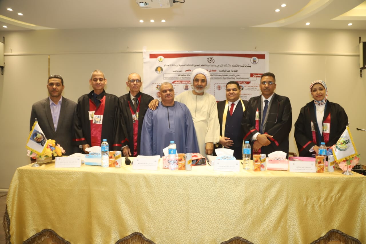 جاءت المناقشة تحت رعاية الأستاذ الدكتور أحمد عكاوي رئيس الجامعة، والأستاذ الدكتور محمد وائل عبد العظيم محمد نائب رئيس الجامعة لشئون الدراسات العليا والبحوث، والأستاذ الدكتور عبد العزيز شيبة عبد الرحمن عميد كلية الزراعة، والأستاذ الدكتور عبد الحليم الشعيني وكيل الكلية لشئون الدراسات العليا والبحوث، والأستاذ الدكتور منتصر محمد محمود حمدون رئيس قسم الاقتصاد الزراعي بالكلية.