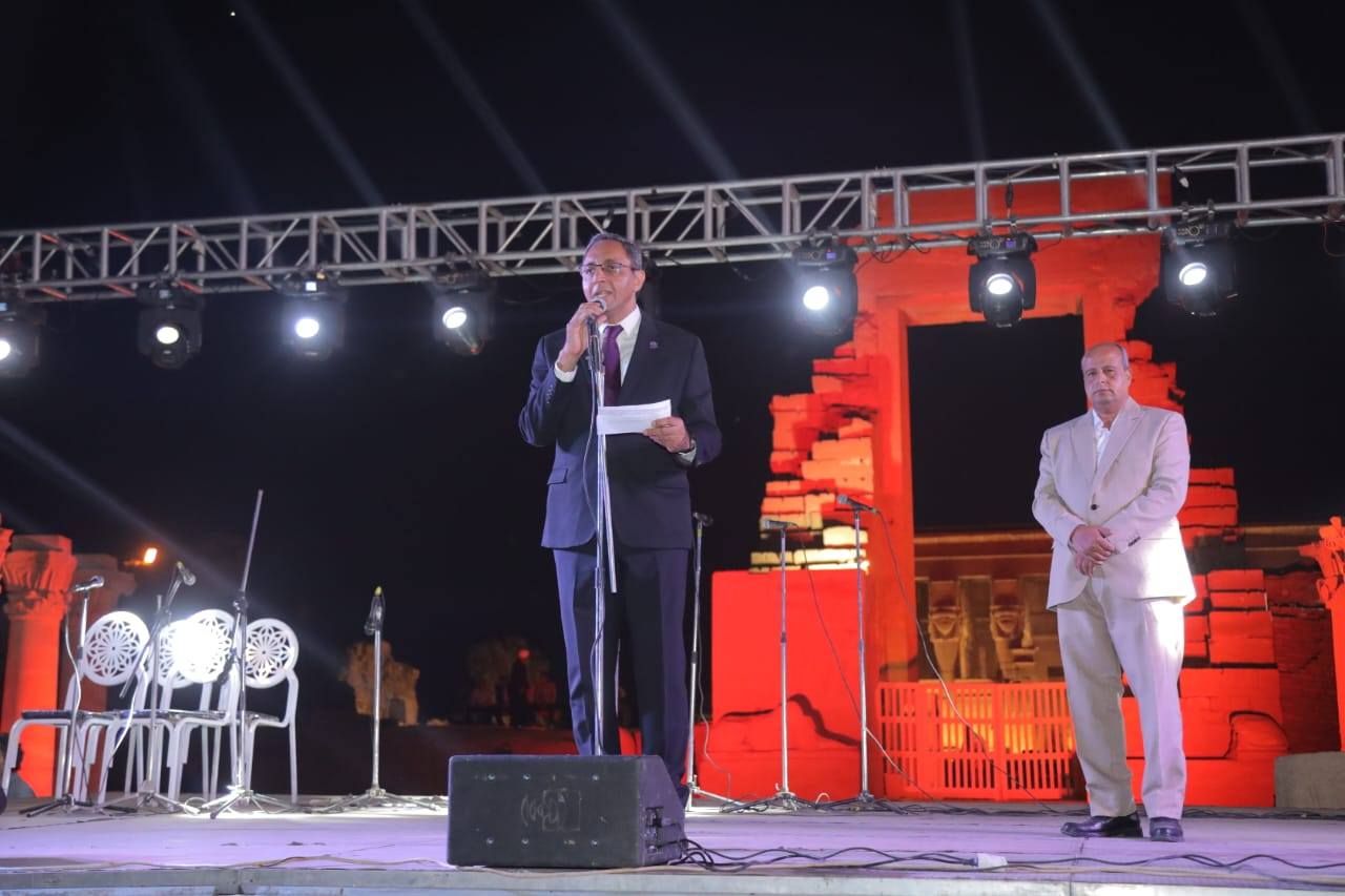 ومن جانبه، رحّب الناقد السينمائي هيثم الهواري، رئيس المهرجان، في كلمته بالدكتور خالد عبدالحليم وجميع الحضور، مؤكداً أن إقامة المهرجان في ساحة معبد دندرة تحمل رسالة رمزية عميقة تربط بين عبق التاريخ المصري وإبداع الحاضر، مشيراً إلى أن المهرجان يأتي في إطار دعم الدولة للفنون والحرف التراثية بوصفها مكوناً أصيلاً من مكونات الهوية الوطنية المصرية.