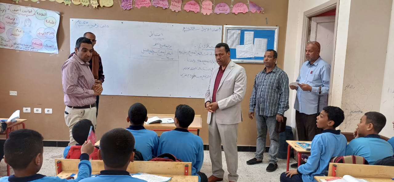 وشدد عبد الواجد، على متابعة أداء الطلاب والمعلمين وضمان سير العملية التعليمية وفق الخطط المقررة، مؤكدًا على الالتزام بالقرارات والآليات المنظمة للتقييمات وتصحيحها أولًا بأول، واطلع على سجلات تحضير المعلمين والقرائية وسجلات 5 سلوك، موجهًا بتوثيق البيانات واعتمادها من مدير المدرسة، والحفاظ على نظافة الفصول والساحات وعدم الكتابة على الجدران.