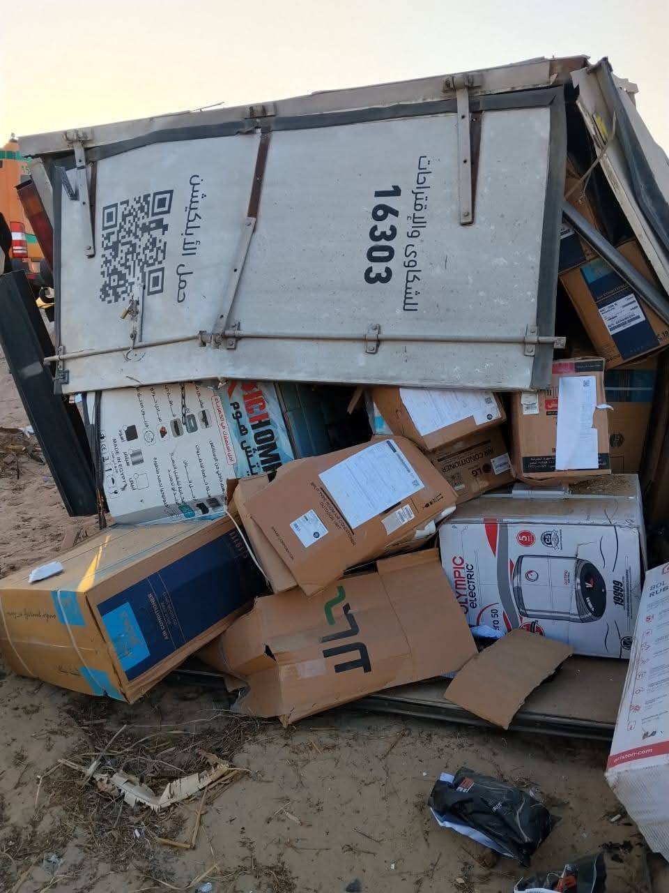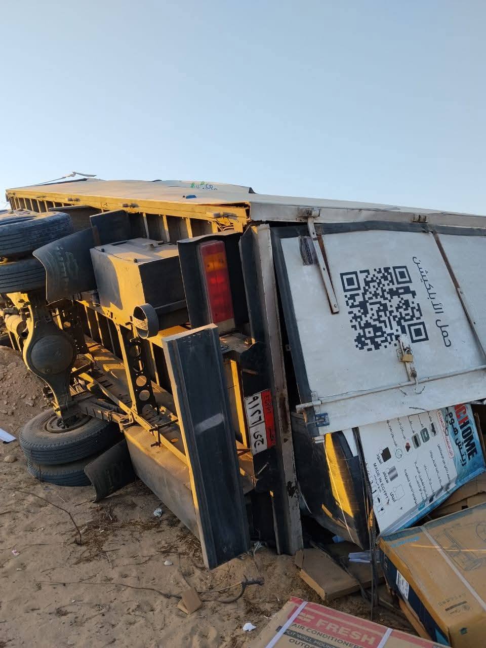 إصابة سائق في انقلاب سيارة نقل محملة بالـ ” تكييفات” بالطريق الصحراوي بـ نجع حمادي