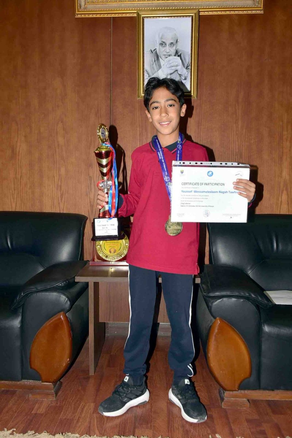 كما تم تكريم الطلاب يوسف وسام الإسلام، ومريم علي عبدالصادق، وهم فريق برمجة وتقييم روبوت وتنفيذ التحديات المختلفة، الحاصلون على المركز الثالث عالميًا.