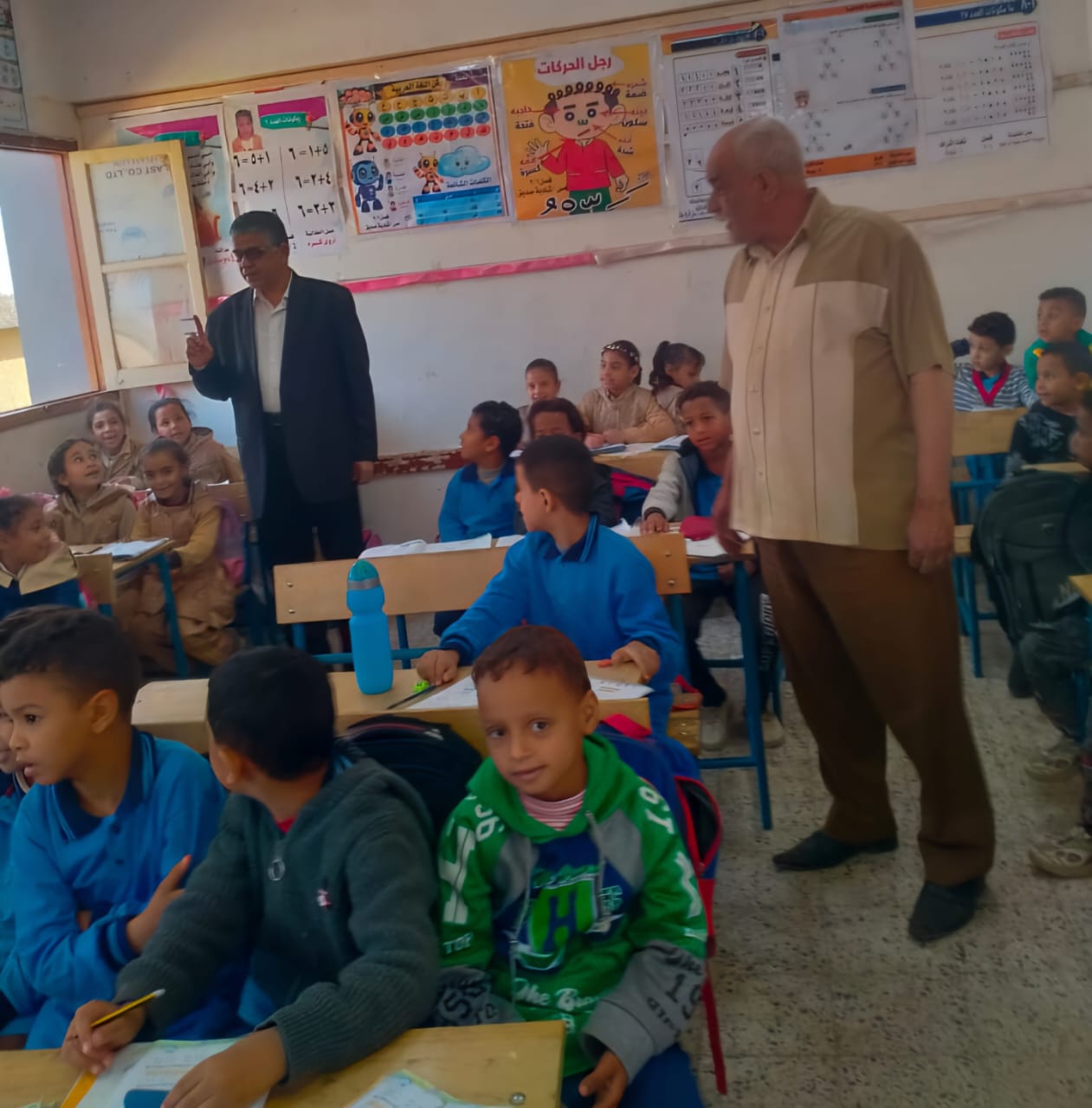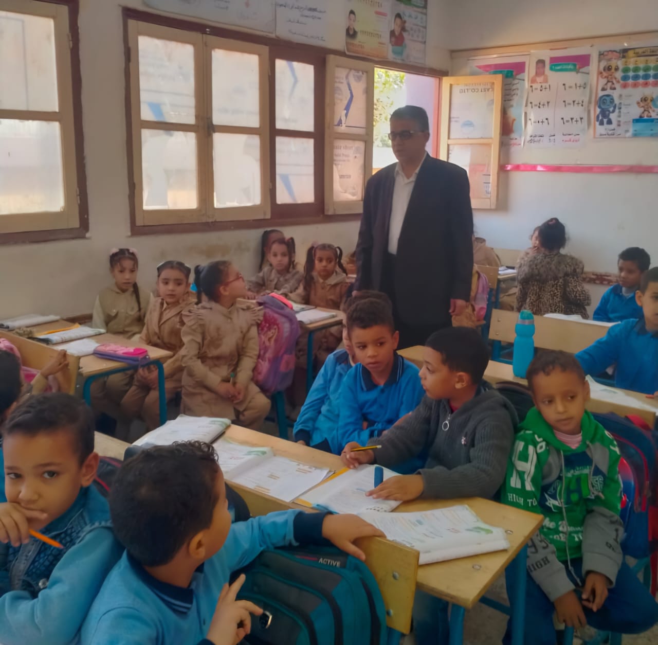 وخلال الجولة، تفقد وكيل الإدارة عددًا من الصفوف الدراسية، وتجاذب بالشرح مع التلاميذ، واستمع إلى آراء المعلمين حول تطبيق المناهج الجديدة وأساليب التدريس، مؤكدًا على أهمية توفير بيئة تعليمية محفزة وداعمة لتنمية مهارات الطلاب وتحقيق أفضل النتائج التعليمية.