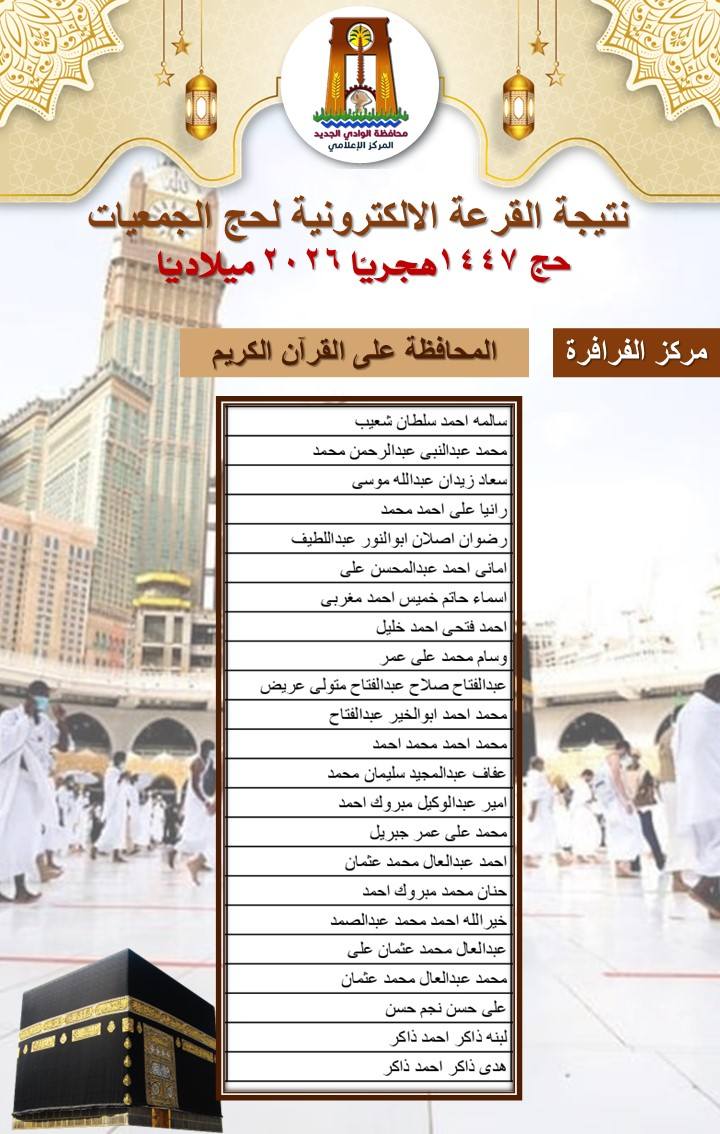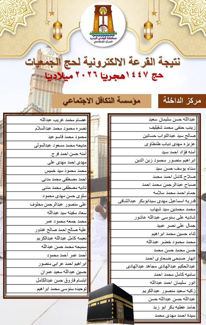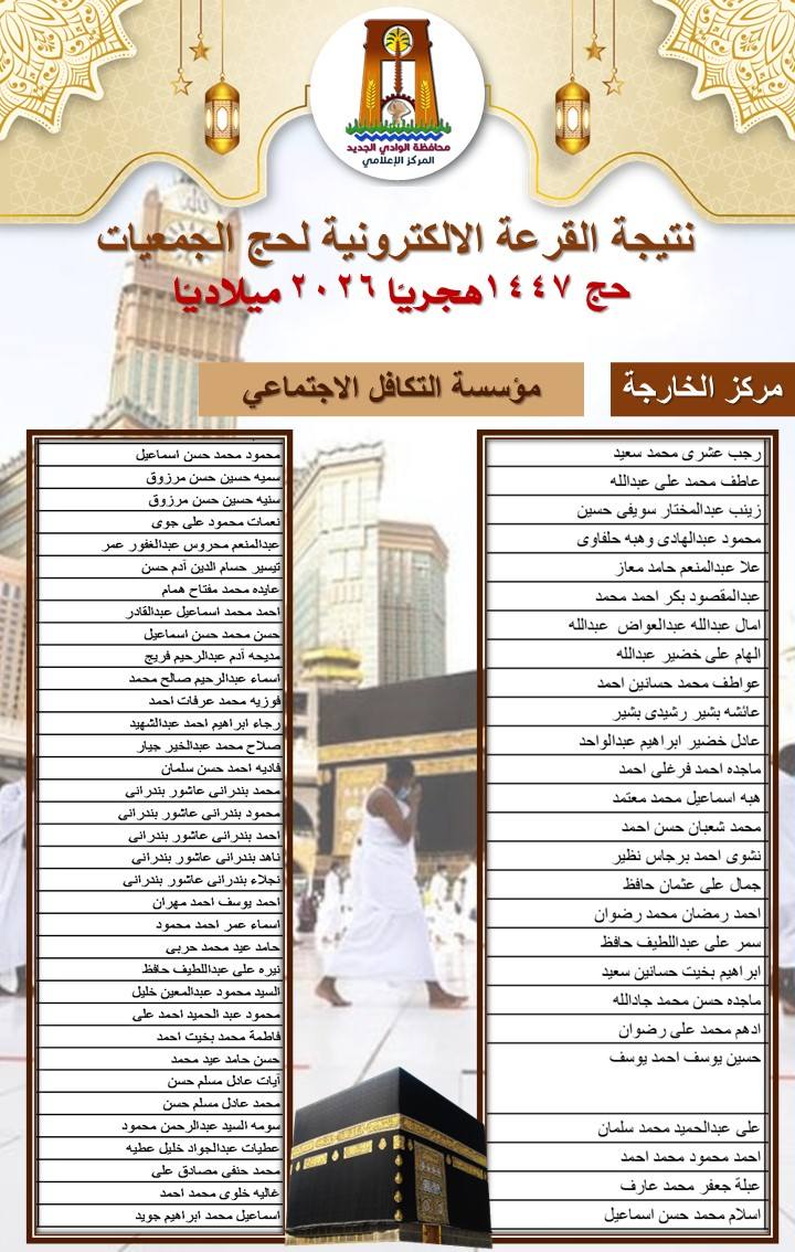 ننشر أسماء الفائزين بحج الجمعيات في الوادي الجديد