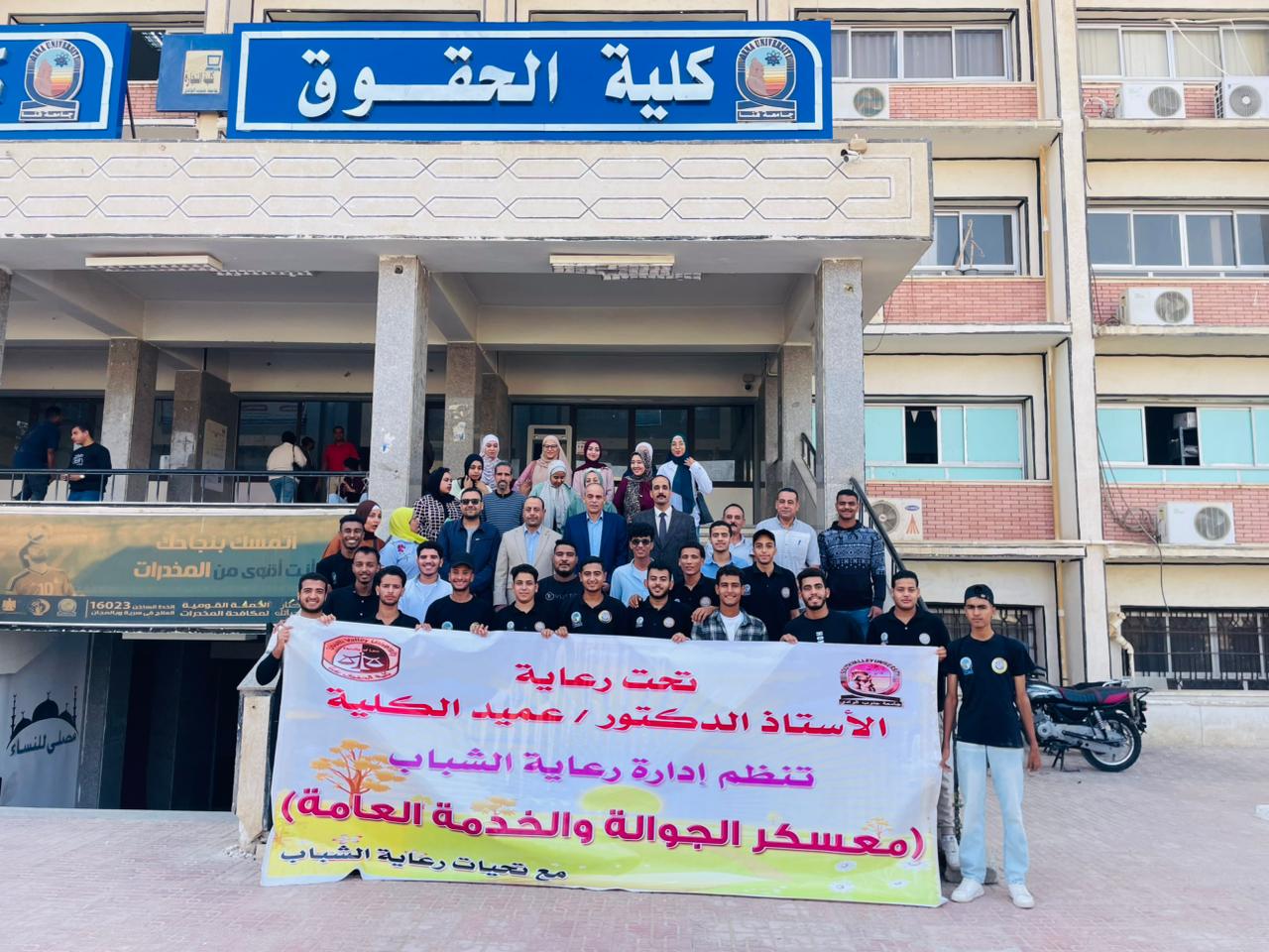 نفذ طلاب كلية الحقوق بجامعة قنا ، ورعاية الشباب بالكلية، وطلاب من أجل مصر معسكرًا للخدمة العامة برعاية الدكتور أحمد عكاوي عبد العزيز، رئيس الجامعة، والدكتور محمد سعيد ، نائب رئيس الجامعة لشئون خدمة المجتمع وتنمية البيئه ، والدكتور أشرف موسى ، نائب رئيس الجامعة لشئون التعليم والطلاب والدكتور عبد الباري سليمان، عميد الكلية، وبحضور الدكتور أبو الحمد مصطفى عميد كلية التجارة والدكتور صدام حسين وكيل كلية التجارة لشئون التعليم والطلاب، وبإشراف الدكتور عباس مصطفى عباس وكيل الكلية لشئون التعليم والطلاب.