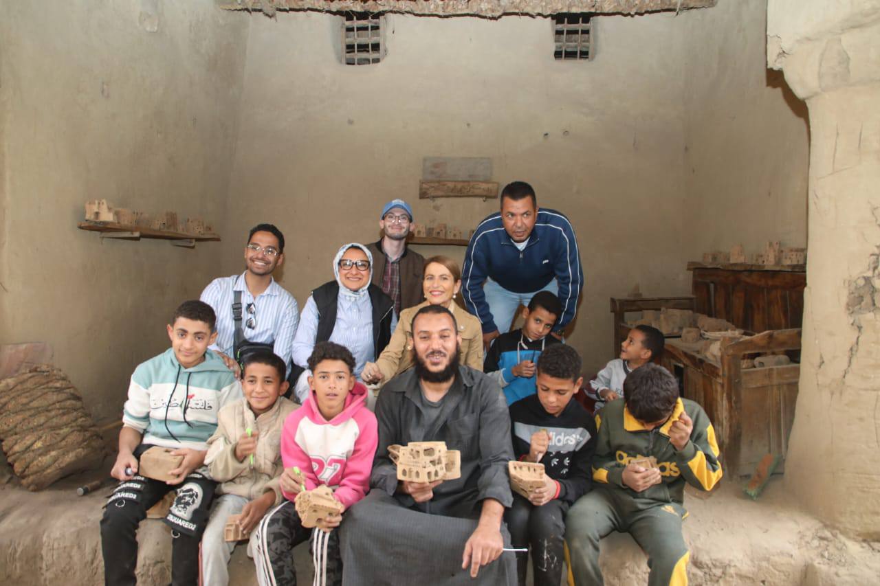 وتفقدت نائب المحافظ و المدير الإقليمي لمكتب اليونسكو ، معرض الحرف اليدوية والبيئية بالقرية، والذي يضم مجموعة من المبدعين في مجال الحرف اليدوية و التراثية من فئات عمرية مختلفة، و ورش العمل المخصصة لتعليم الأطفال النحت على جذوع النخل.