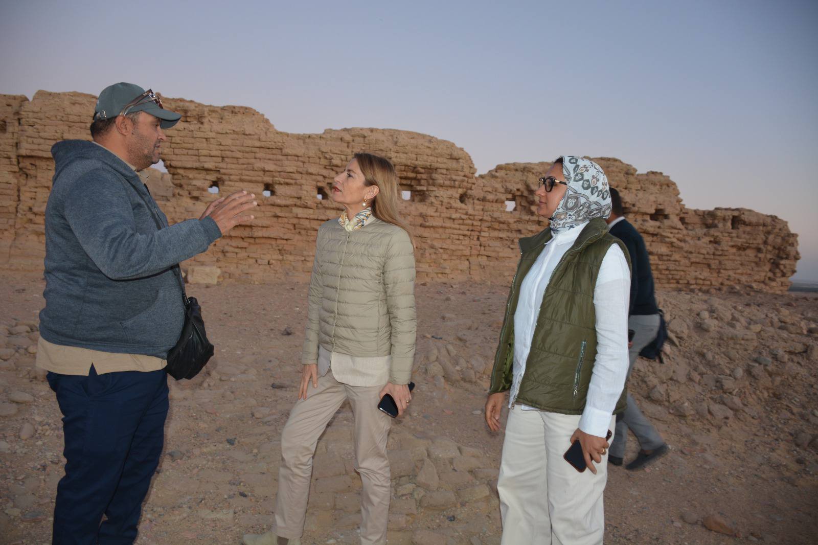 واستمعت نائب محافظ الوادي الجديد، والدكتورة نوريا سانز، إلى شرح يحكي تاريخ المنطقة التي تعد محطة عبور هامة كانت تشرف على مسار حركة التجارة بين عموم مصر وصولاً إلى منطقة دارفور بالسودان