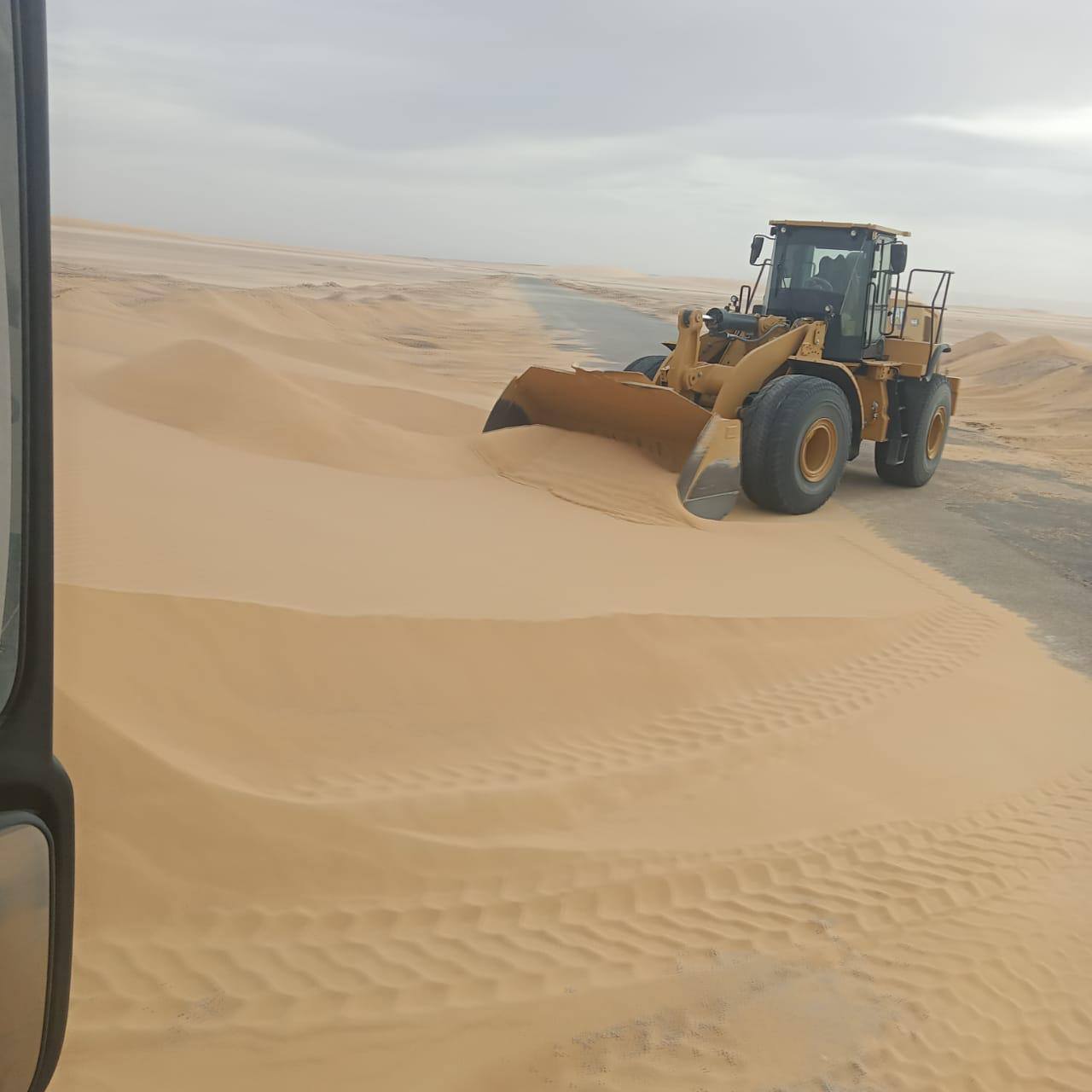 هيئة الطرق بأ الوادي الجديد تواصل إزالة الكثبان الرملية ووضع علامات إرشادية وترميم الحفر بطرق المحافظة