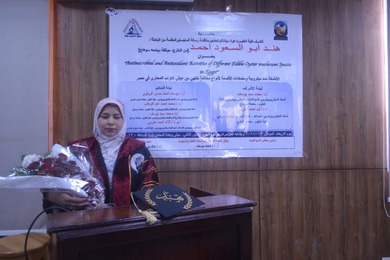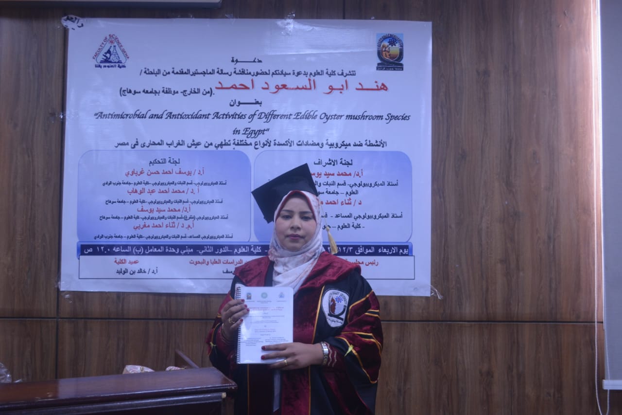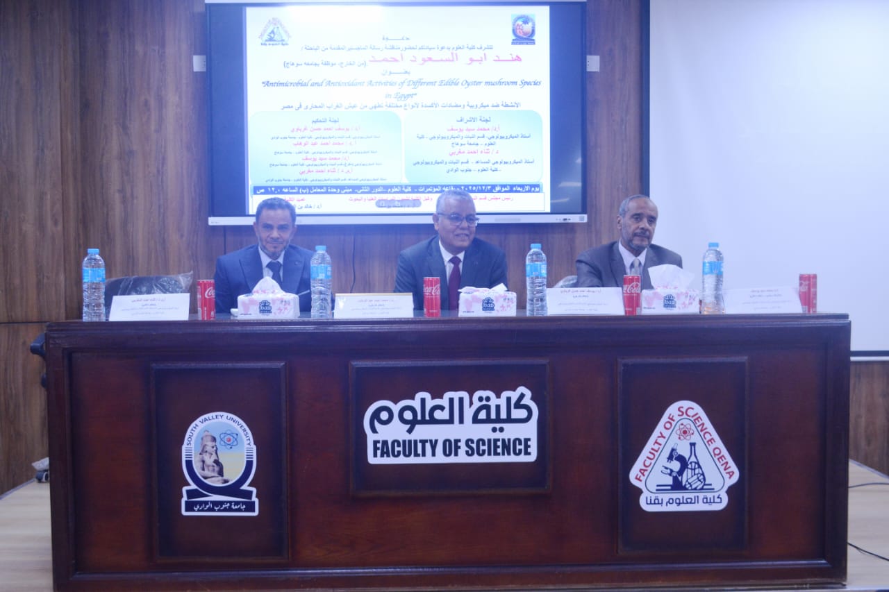 شهدت كلية العلوم بجامعة قنا مناقشة رسالة الماجستير المقدّمة من الباحثة هند أبو السعود أحمد، أخصائي معمل بكلية العلوم بجامعة سوهاج، حول الأنشطة الميكروبية ومضادات الأكسدة لأنواع مختلفة مطهية من عيش الغراب المحاري في مصر.