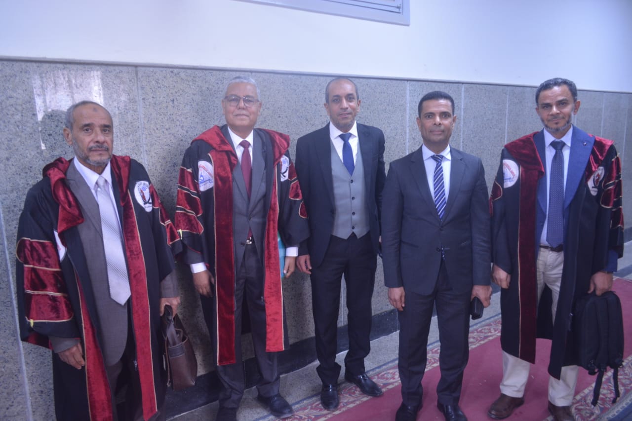 وجاءت المناقشة برعاية الدكتور أحمد عكاوي، رئيس الجامعة، والدكتور محمد وائل عبد العظيم، نائب رئيس الجامعة لشئون الدراسات العليا والبحوث، والدكتور خالد بن الوليد ، عميد الكلية، والدكتور محمد يوسف، وكيل الكلية لشئون الدراسات العليا والبحوث.