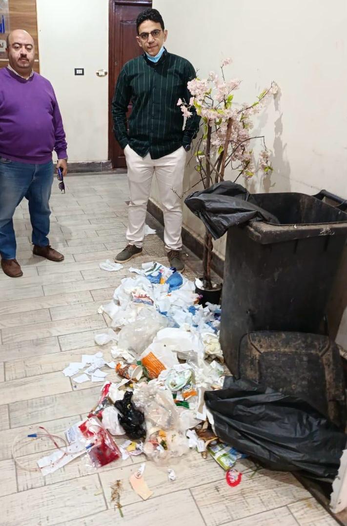 وأثبتت المعاينة إلقاء تلك العيادات النفايات وسط القمامة مما تسبب في تسريبها خارج المنظومة الآمنة.