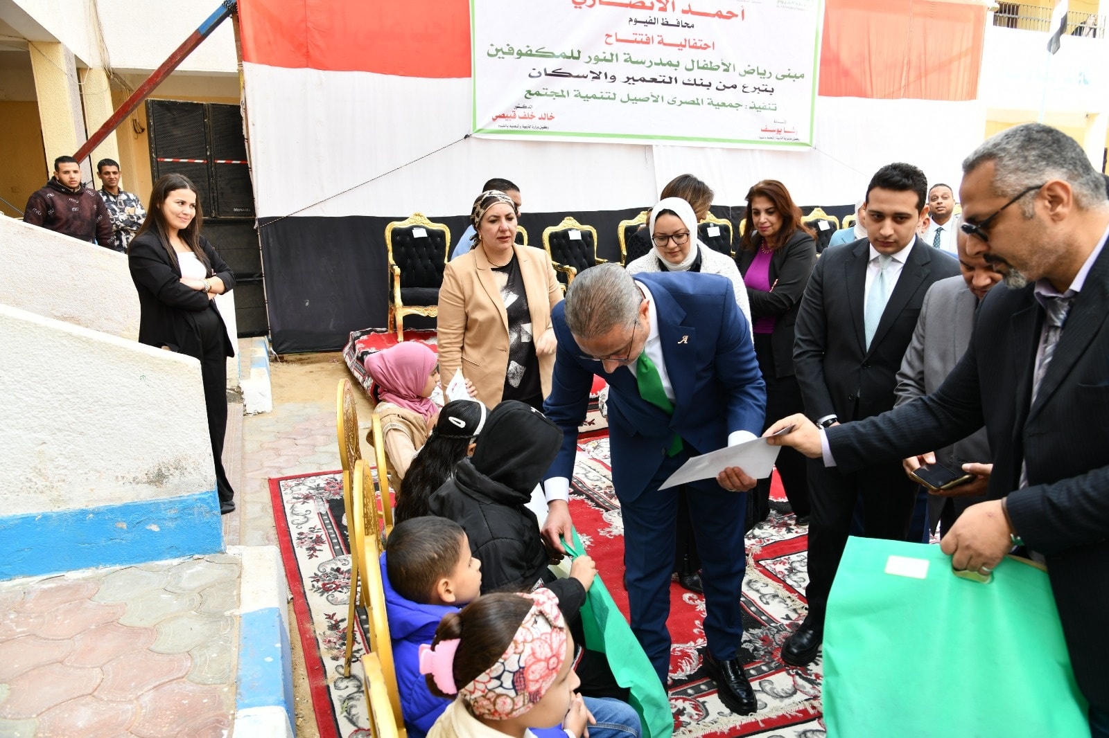 وعقب افتتاح مبنى رياض الأطفال بمدرسة النور للمكفوفين بكيمان فارس، تفقد محافظ الفيوم، ومرافقوه، مختلف أقسام المبنى الذي يضم عدد 4 قاعات للأطفال، وحجرة للمدرسين، ودورة مياه، وحديقة للأطفال، ذلك المبنى الذي قام بتنفيذ أعماله الإنشائية وتشطيبه جمعية "المصري الأصيل"، بتمويل من بنك الإسكان والتعمير، وتم فرشه بالمقاعد وديسكات الأطفال من خلال الهيئة العامة للأبنية التعليمية