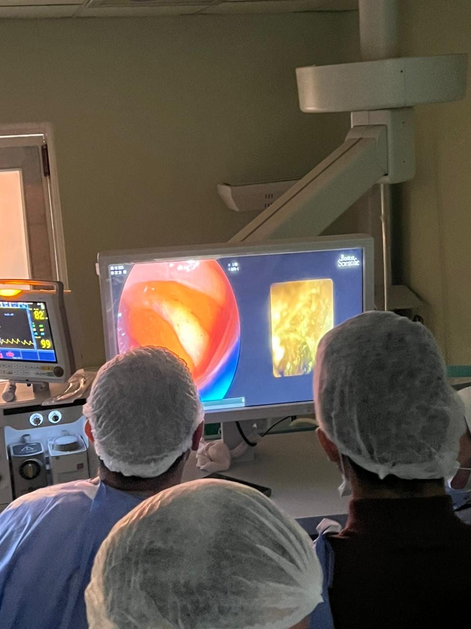 كما نجح الفريق، في التعامل مع الحالة الرابعة، وهي لمريض يعاني من ضيق بالمستقيم مع براز متحجر فشلت محاولات استخراجه بالمنظار التقليدي، حيث تم تفتيته بالليزر وإزالته بنجاح.