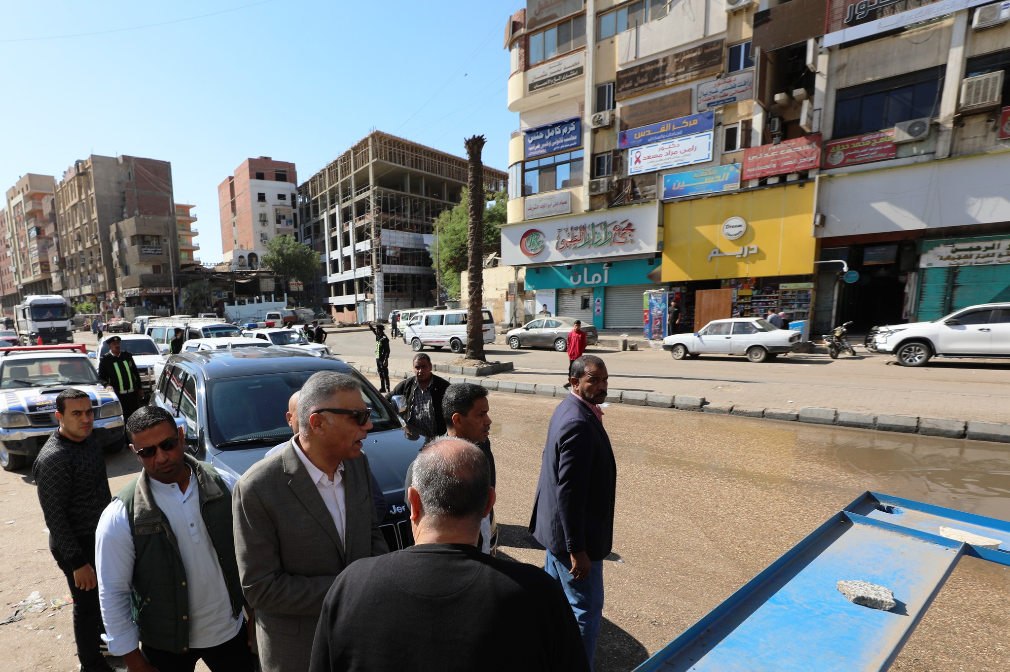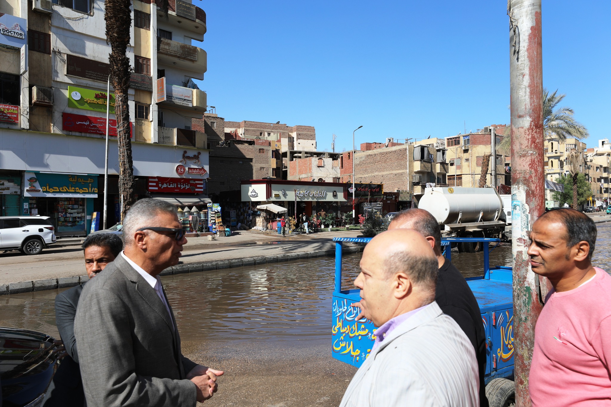 كسر مفاجئ بخط مياه الشرب العمومى بمنطقة الإشارة بأسوان.. والمحافظ يتابع عملية الإصلاح